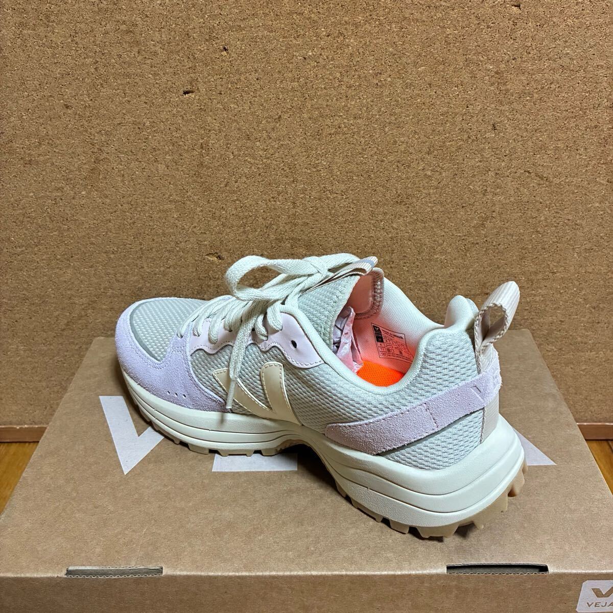 また、アッパーにはリサイクルポリエステルを、サイドにあしらわれたVマークはラバーやもみ殻の混合素材を採用。環境にも配慮された一足です。