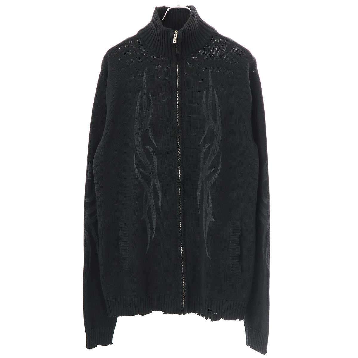 24AW Y2K Zip-Up Cardigan トライバルダメージ ジップアップカーディガンニット 808489 T3336