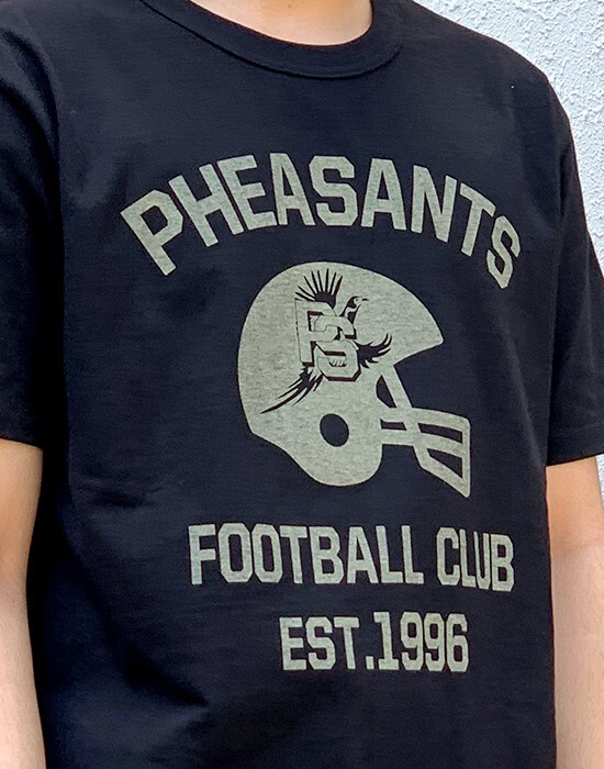 桃太郎の仲間のキジをキャラクターにした架空のアメリカンフットボールチームのTシャツを