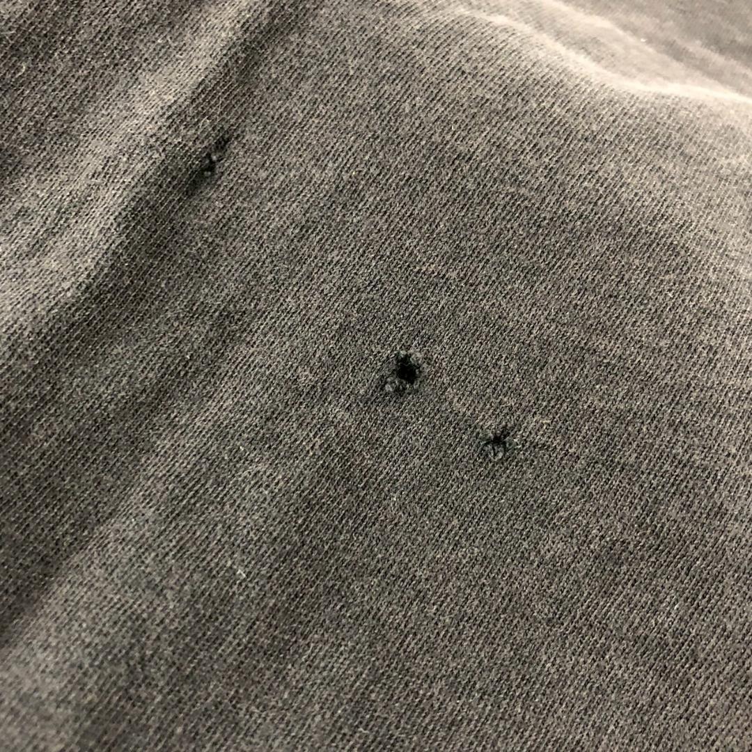 汚れ、色褪せ、使用感、黄ばみ、穴あき(左袖、前腹)が御座います。