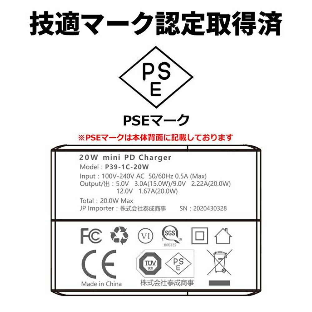 急速充電器 ACアダプター 20W ホワイト 充電器 コンセント スマホ パソコン USB Type-C機器対応 軽量 小型