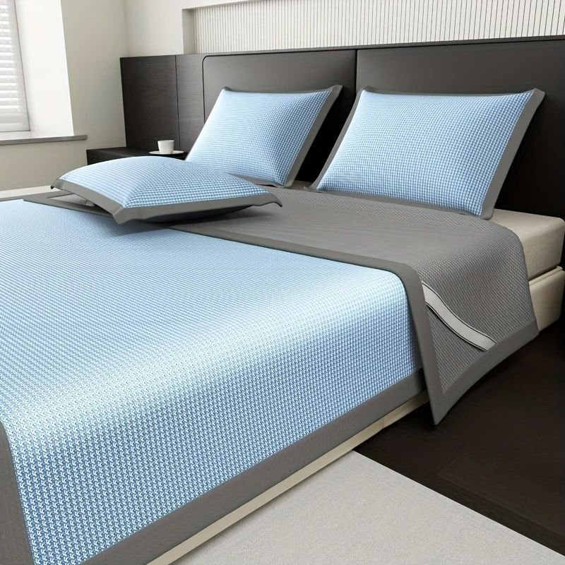 マットレスパッドセット 夏用 ソフト 快適 通気性 クールマット 1パッド+2ピローケース ブルー【サイズ連絡必須!】