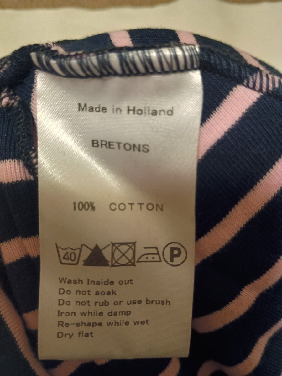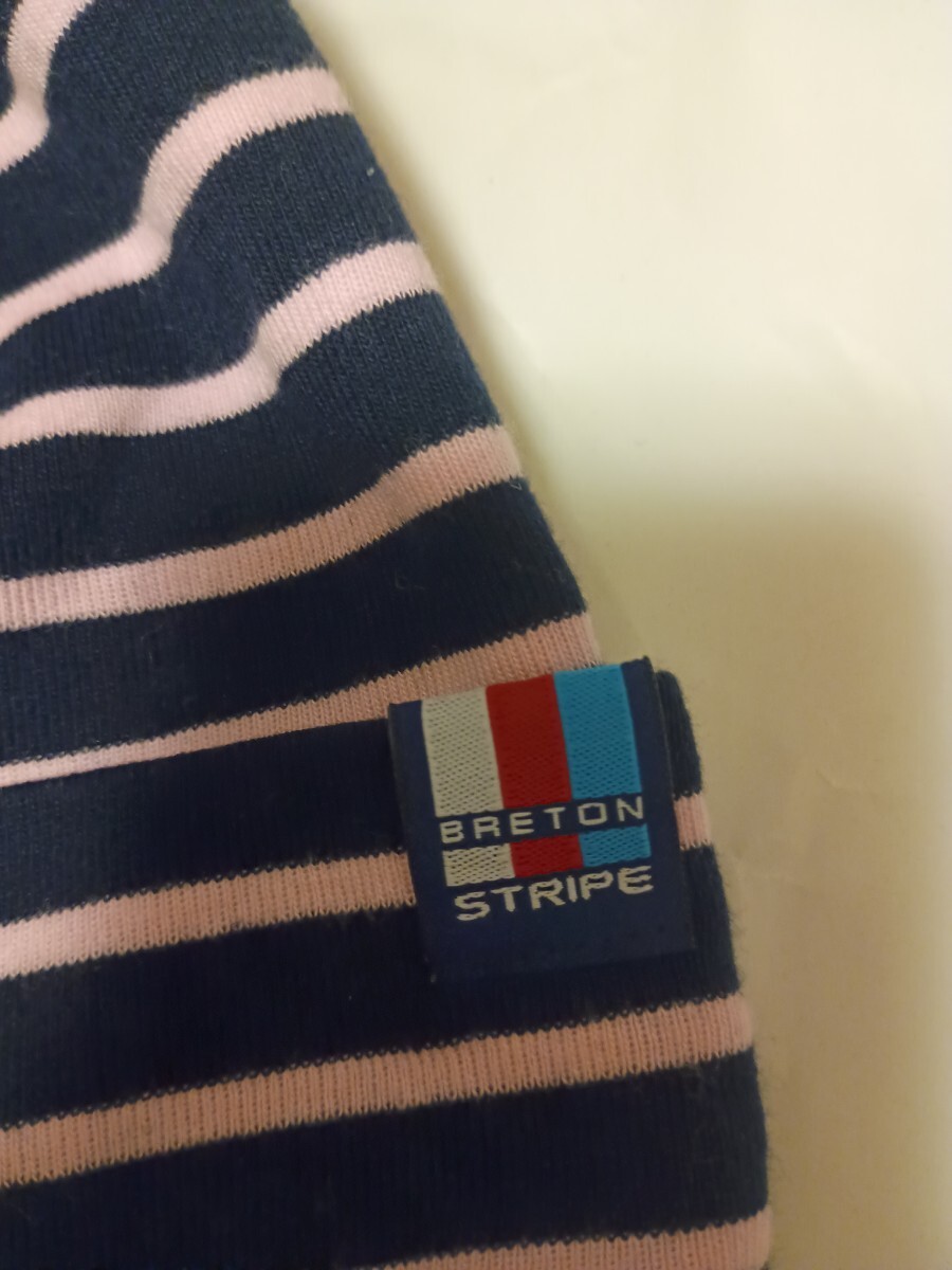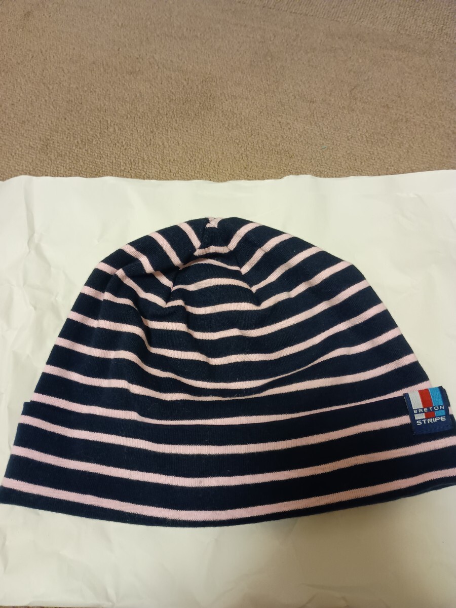 ネイビー×ピンクのボーダーとても良いBretonのコットンビーニーになります。