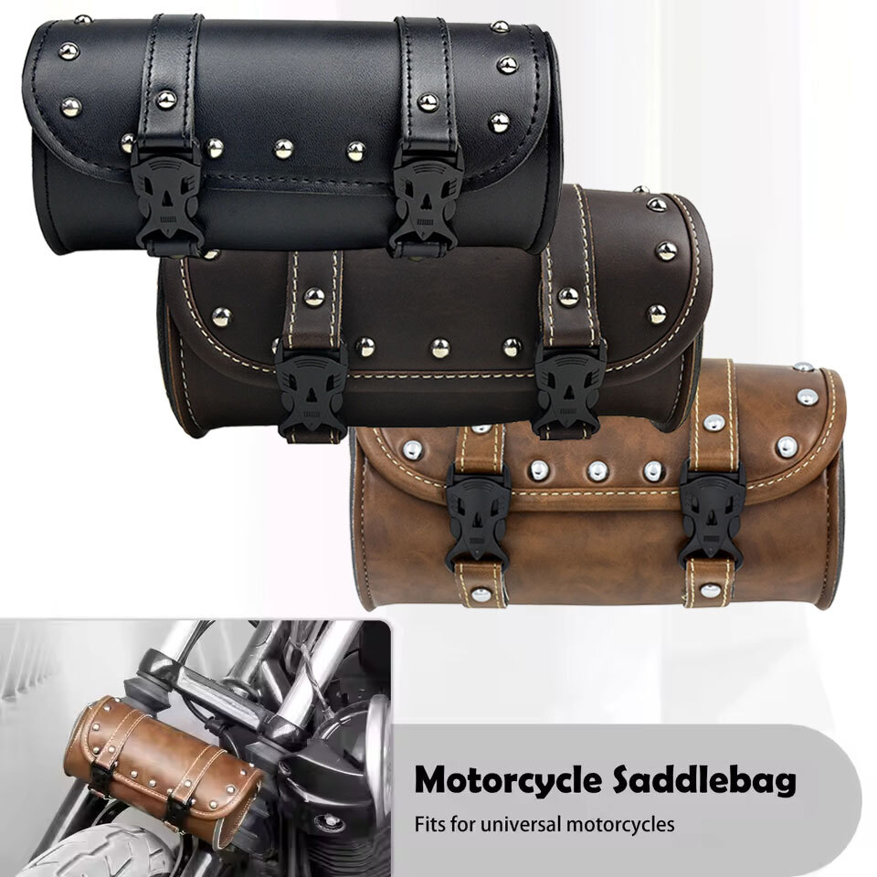 ユニバーサル: ドゥカティ用 オートバイフロントフォークツールバッグハンドルバーサドルバッグロールバレルレーシングテール収納 Pu レザーバッグ