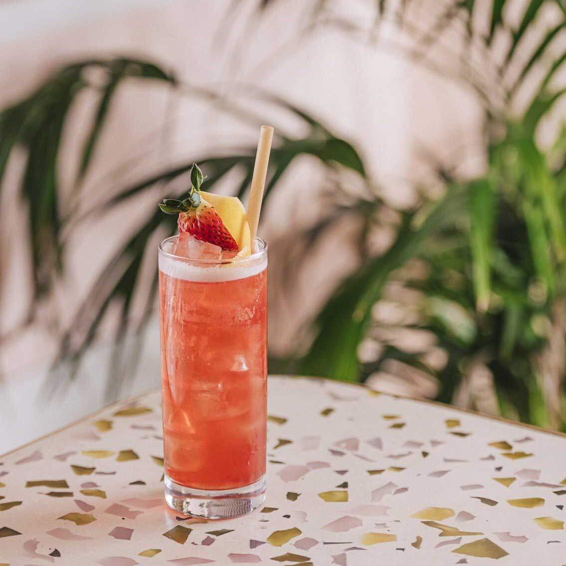 袋にはBio Degradable〜生分解性のメッセージがあり、お店の環境面での訴求につながります。色は落ち着いたライトブラウンで、カフェやバーのジュースやカクテルにも映えます。