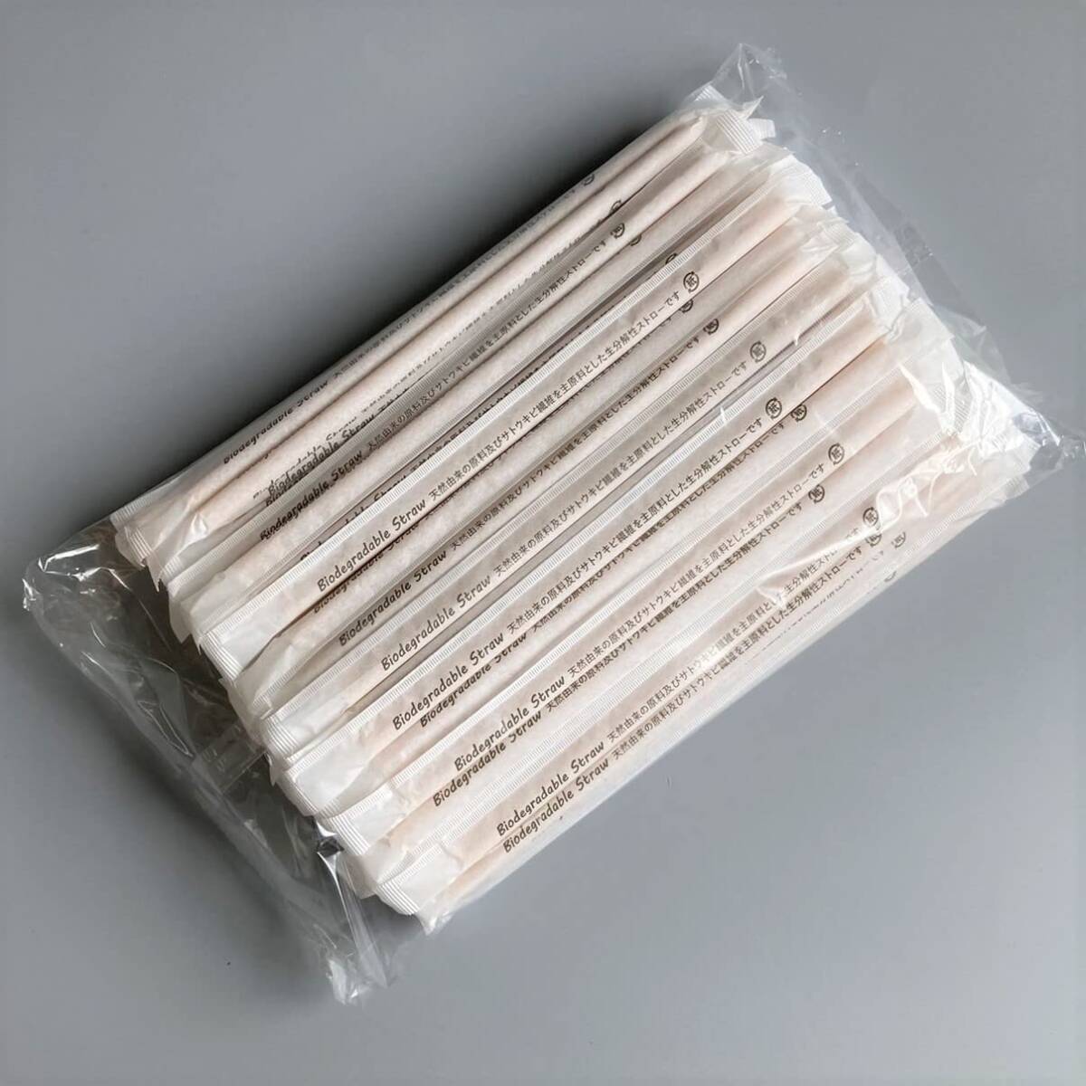 本来なら廃棄されるサトウキビの搾りカスから取れるバガス繊維を使用しています。 石油由来のプラスチックを一切使用しておらず、100%堆肥化ができる究極のエコストローです。 【特徴】 紙ストローと比べ固い材質のため、通常のプラストローと同じ感覚で使用できます。 色は落ち着いたライトブラウン。 袋にはBio Degradable〜生分解性のメッセージがあり、お店の環境面での訴求につながります。 熱い飲み物にはつかえません。 【入数】100本 【サイズ】長さ210mm 管径8mm 【材質】サトウキビバガス PLA【原産国】台湾 「2020年国内エクセレントプロダクト賞受賞」