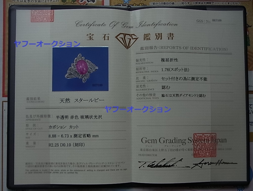 大粒 天然 スタールビー 2.25ct リング 鑑別書付    検索 指輪 宝石 鑑別書 ソーティング