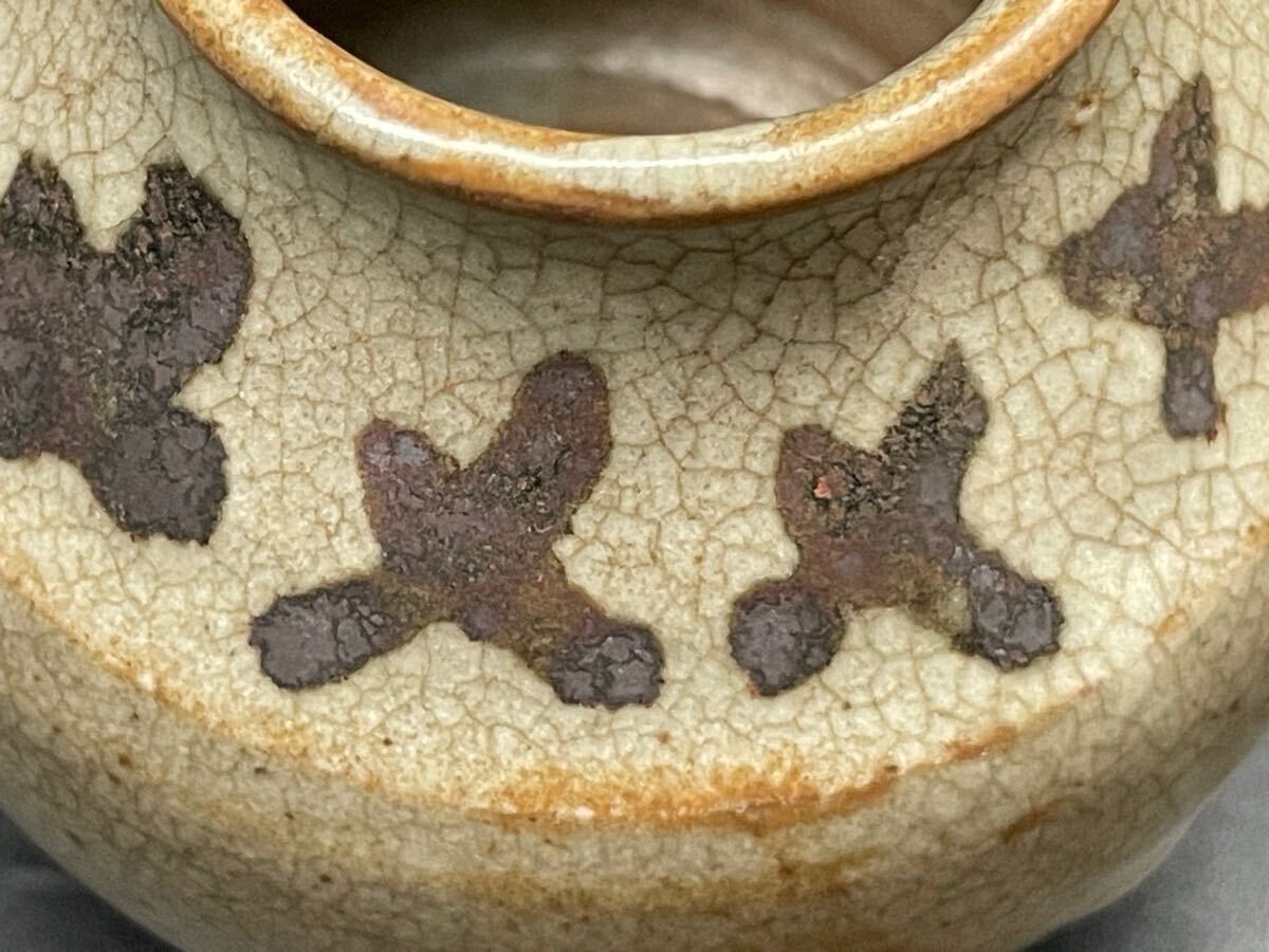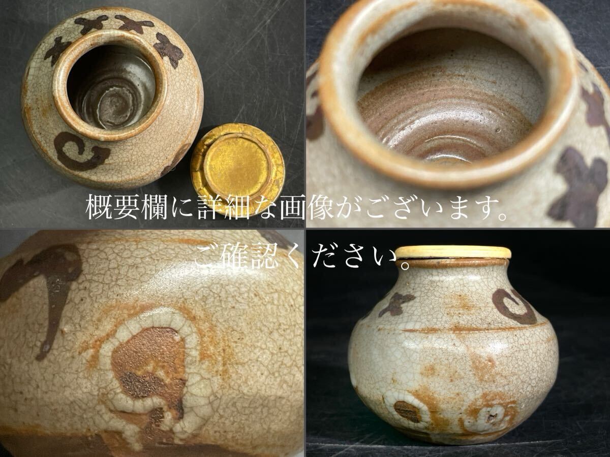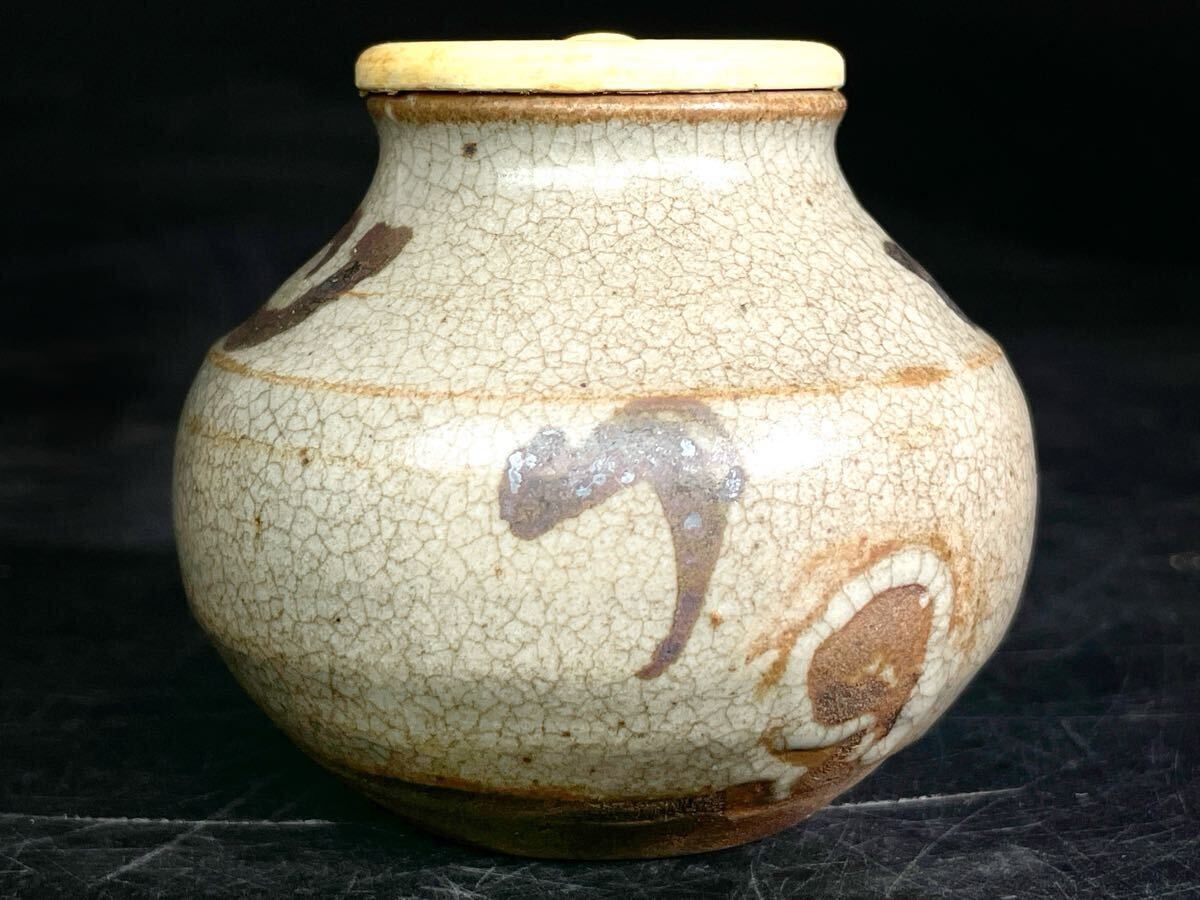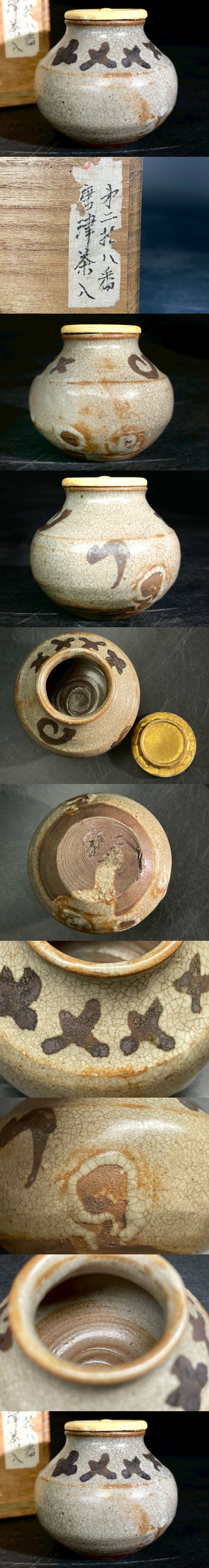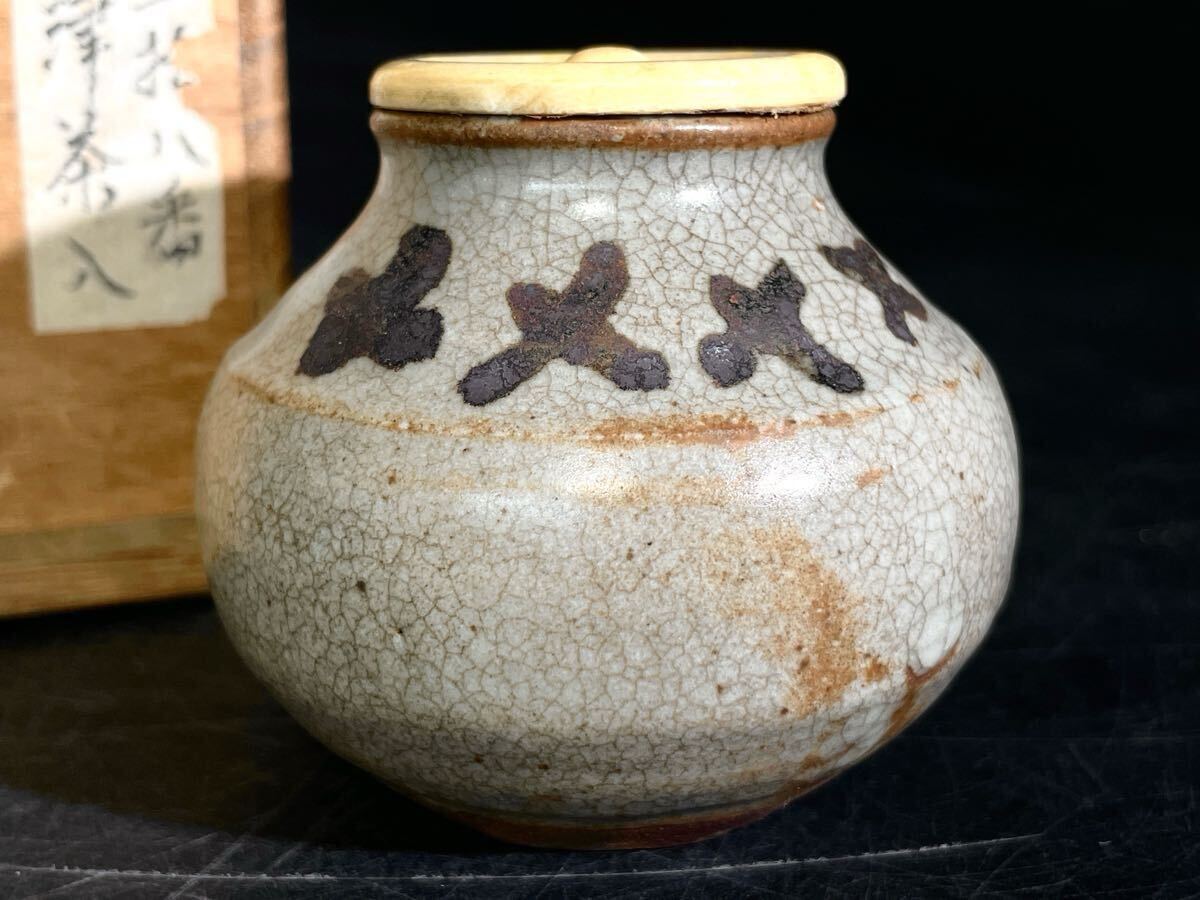| 時代 絵唐津 茶入 木箱付 / 唐津 鉄絵 茶壺 茶器 煎茶道具 煎茶飾 .G1817 |