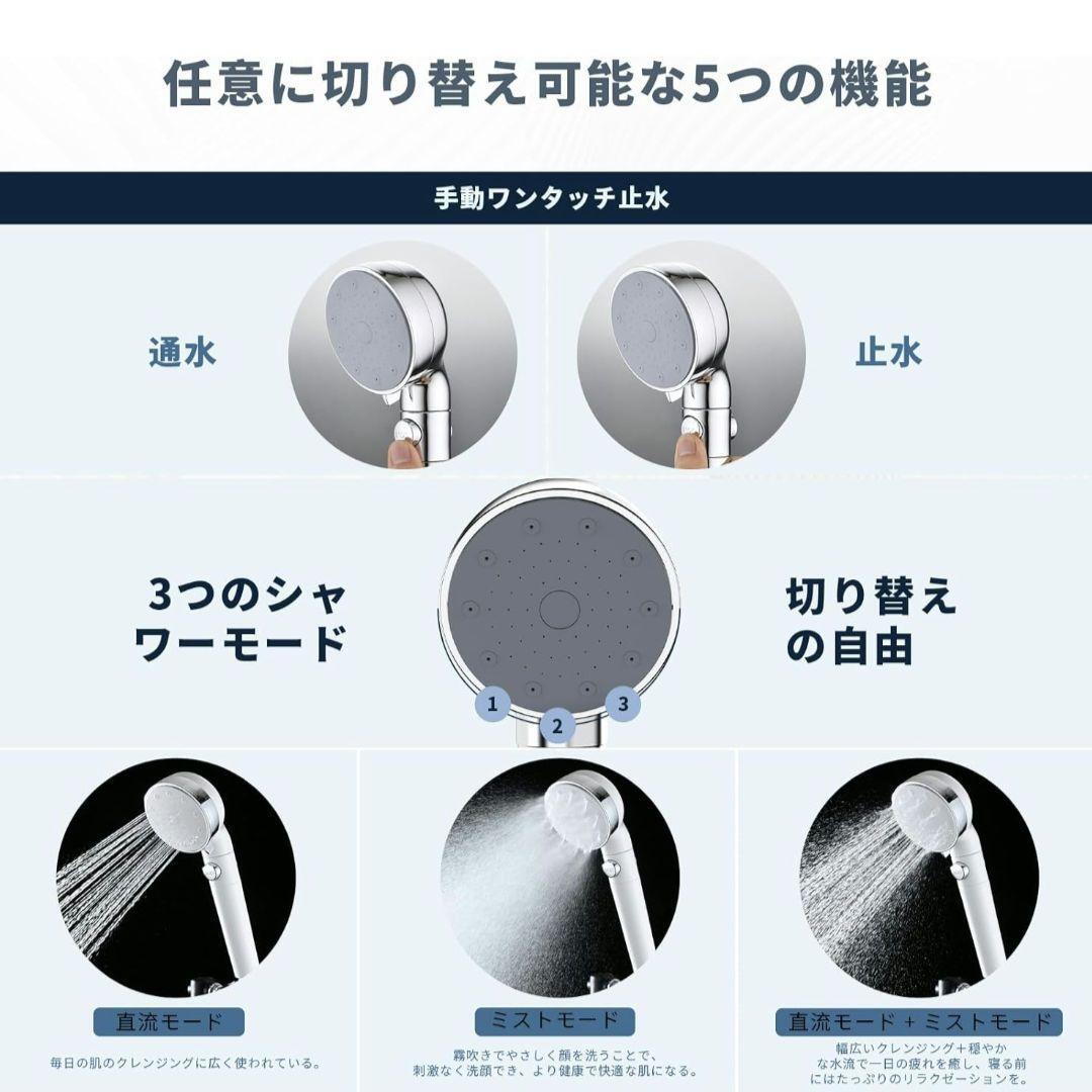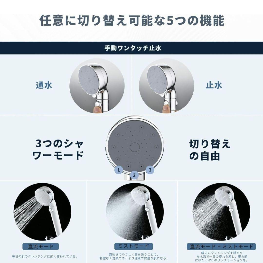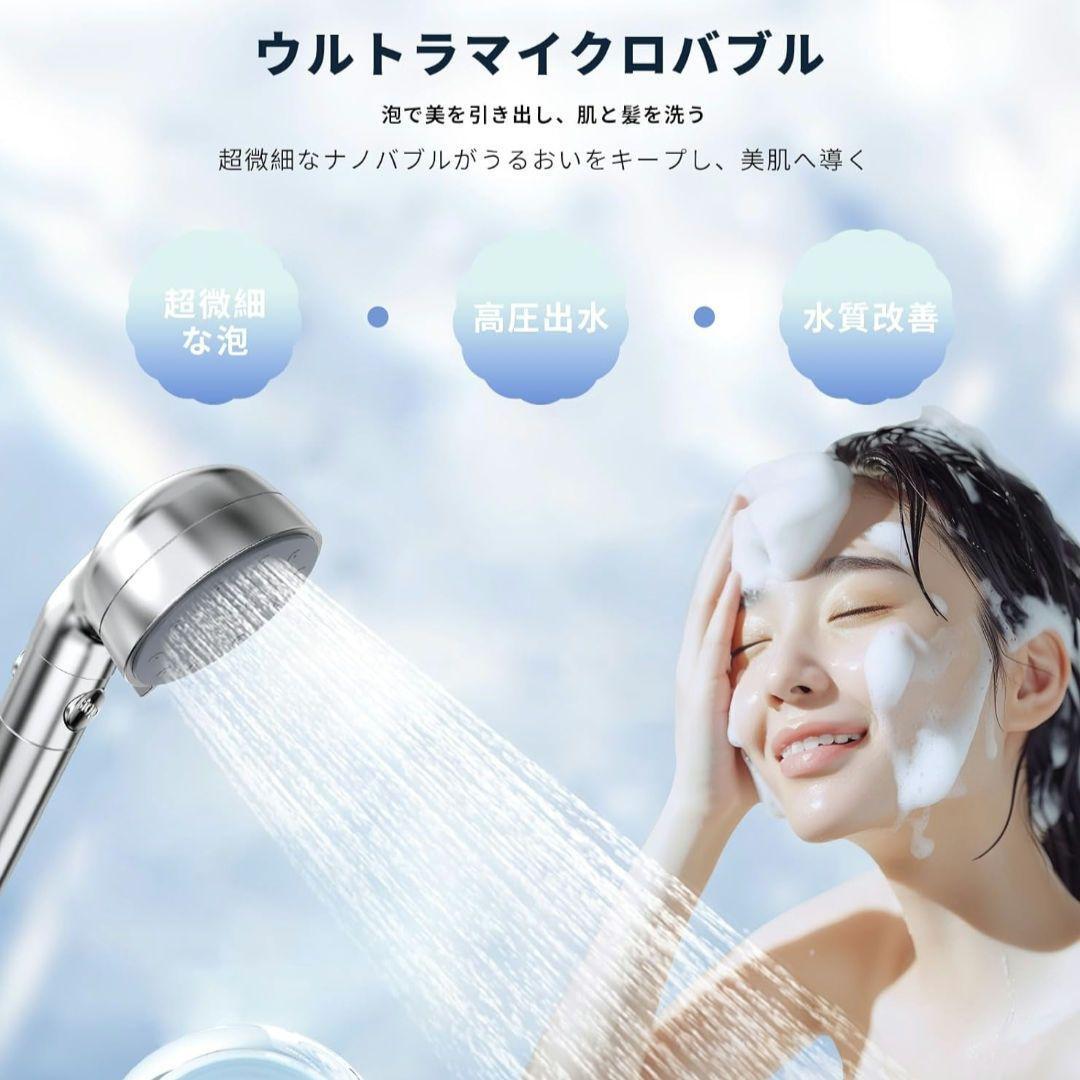 ◆3段階出水モード シャワー・ヘッド 節水 超微細気泡ウルトラファインバブルシャワーヘッド 汚れ除去 M/K/G/Oアダプター付き