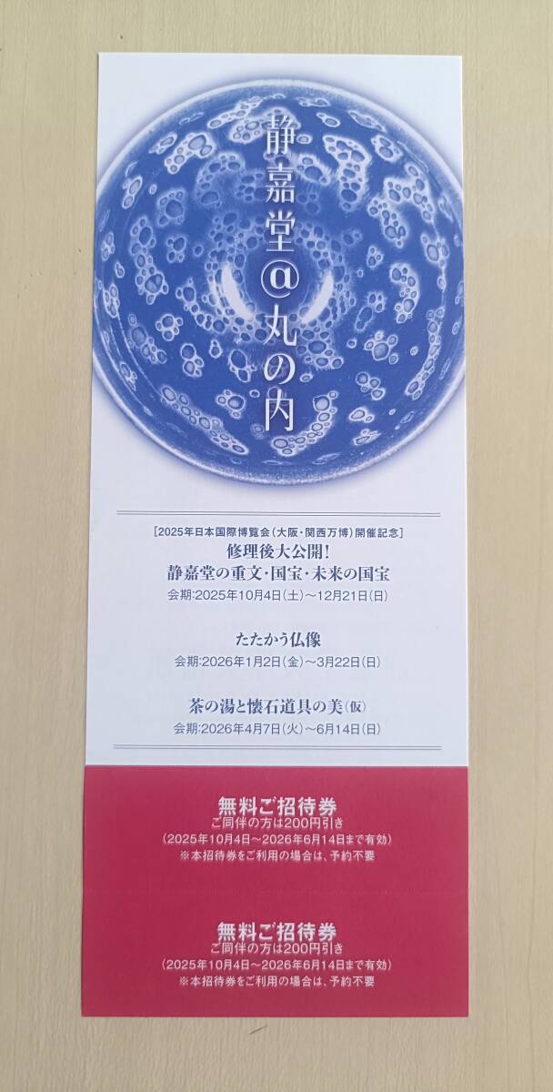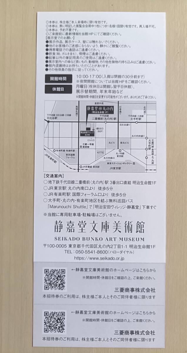 丸紅ギャラリー 静嘉堂文庫美術館 静嘉堂@丸の内 招待券 株主優待 | |