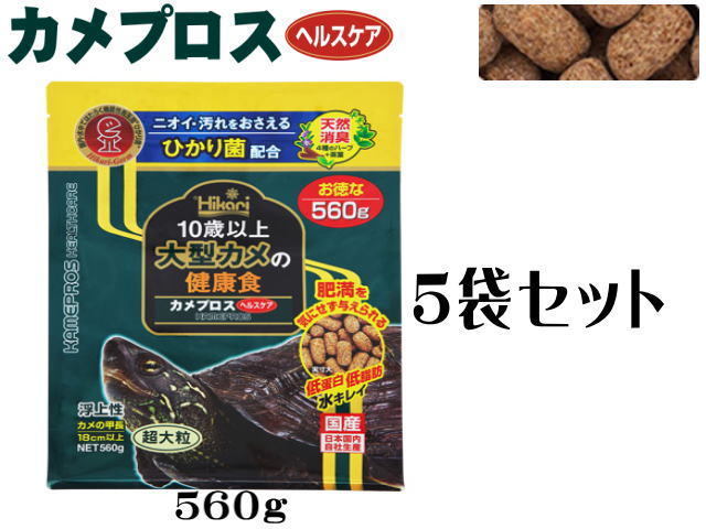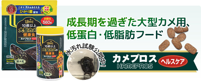 | 商品名:カメプロス ヘルスケア 560g 5袋セット ニオイ・汚れを抑えるひかり菌配合。 成長期を過ぎた大型カメ用、低蛋白・低脂肪のカメフード! 10歳以上のカメの健康食 野生のカメの食性は、成長に伴い植物食性が強くなり 低蛋白・低脂肪なものに変化してきますが、飼育下では 栄養を摂りすぎる場合があります。 本品は成長期を過ぎたカメに最適な配合バランスより 肥満に配慮した健康食です。 甲長約18cm以上の大型カメが一口で食べやすい俵型のため、 食べかすが出にくく飼育水を汚しません。 ひかり菌効果と、茶葉・ハーブエキスの消臭効果に加え、 低蛋白・低脂肪の配合バランスにより、従来品に比べさらに 水の汚れと臭いを抑えます。 生きたひかり菌がカメの腸内バランスを整え、健康をサポートします。 ■与え方 1日1回、数分で食べきれる量を与えて下さい。 1~2週に1日は与えない日を設定することをお勧めします。 水温が低くなると食べる量は少なくなります。 内容量:560gx5袋 径:7.5~8.5mm 長さ:15~16mm →詳しくはこちら |