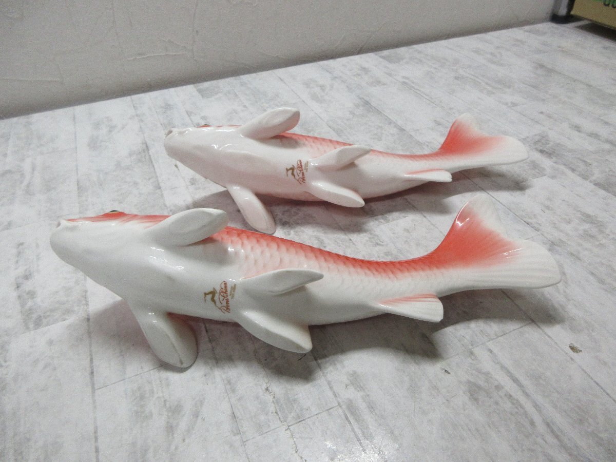 mae 日本陶器会社 Noritake 鯉 一対 置物 錦鯉 オールドノリタケ ボーンチャイナ オブジェ 陶器 【星見】