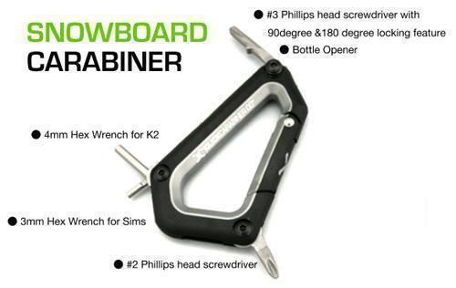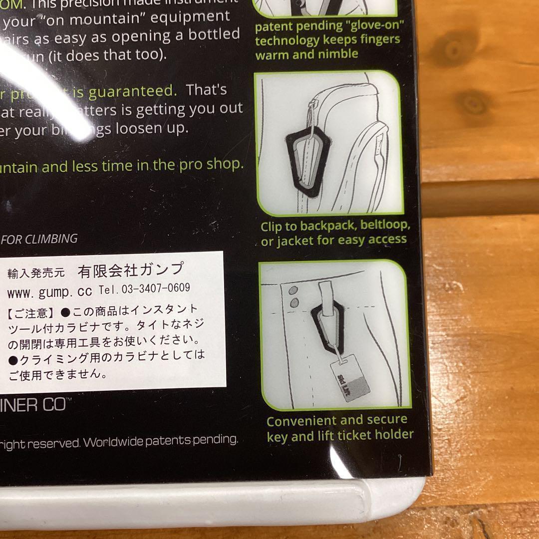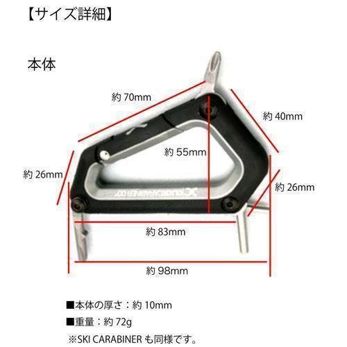 カラビナに2つのプラスドライバーと2つの六角レンチ、 ボトルオープナーを装備ています。