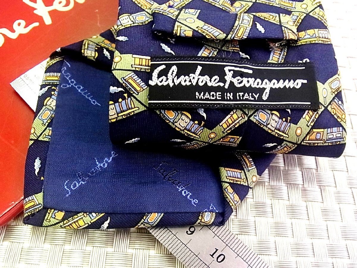★4183S★新品【機関車 乗り物 柄】フェラガモ【FERRAGAMO】ネクタイ
