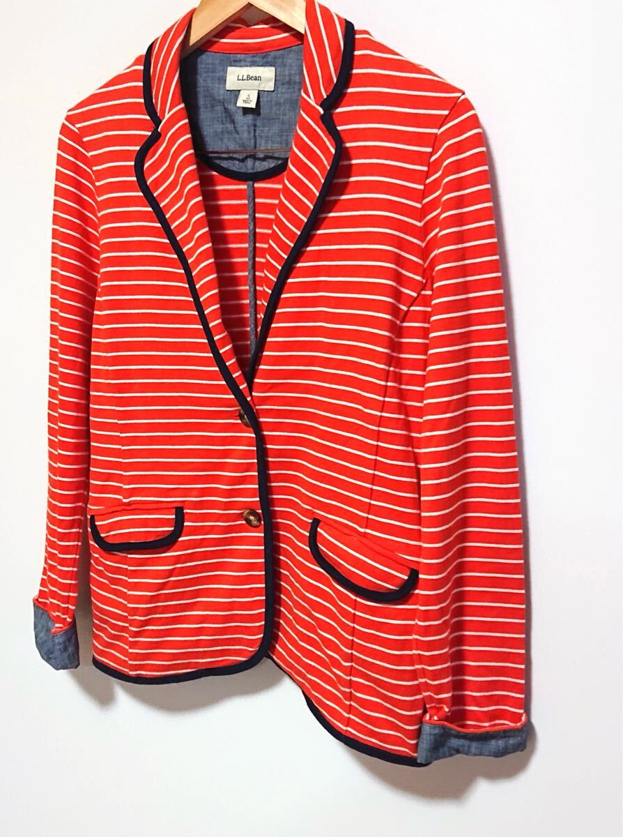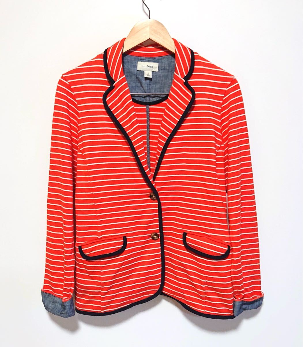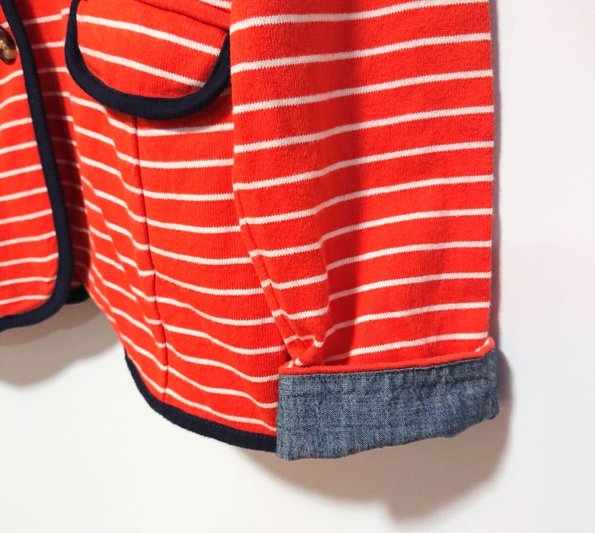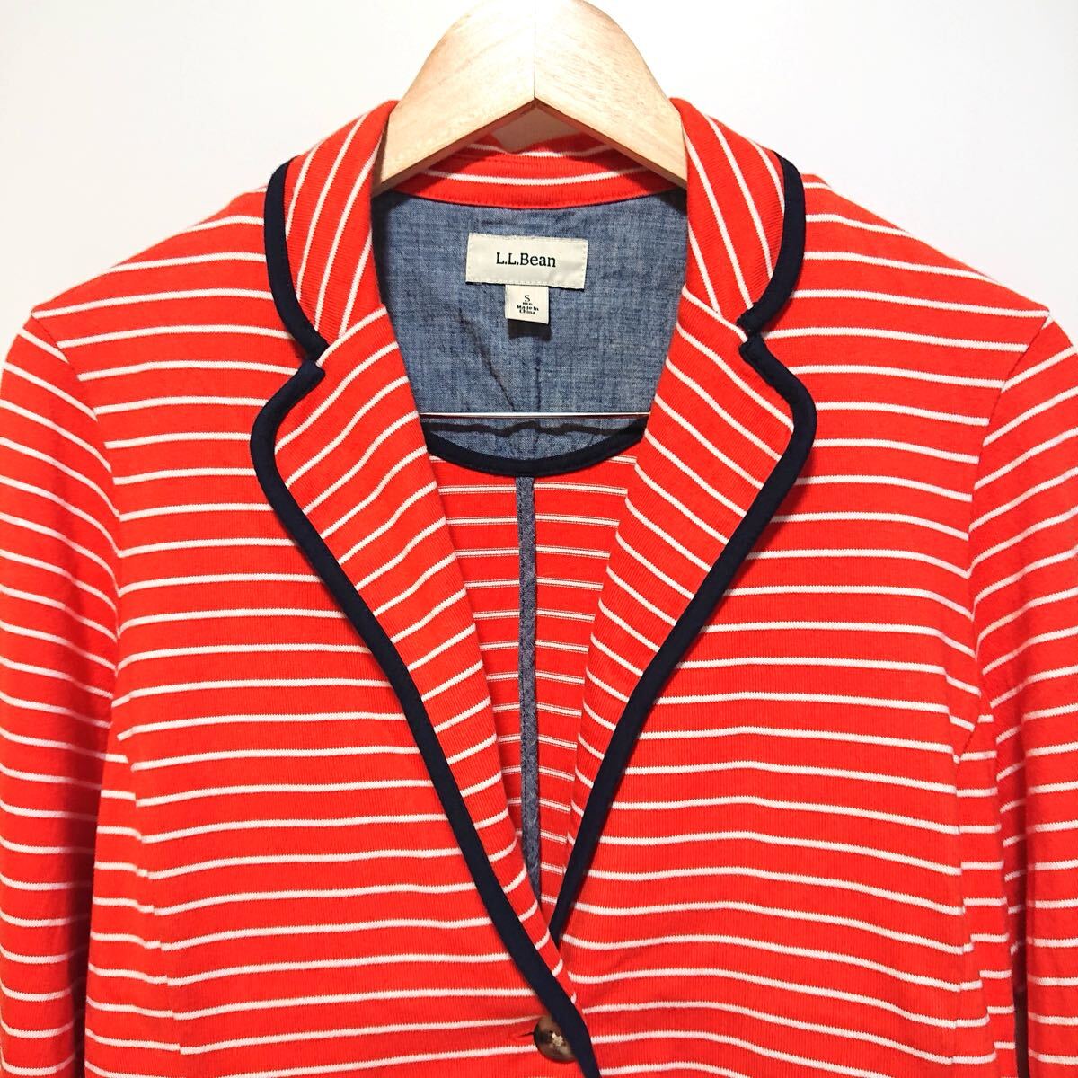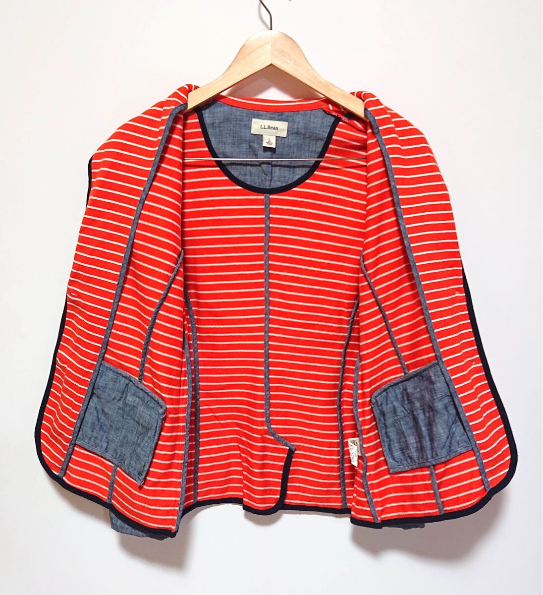 h3483gg L.L.Bean(エルエルビーン)サイズS ジャケット ボーダー オレンジ系 レディース 柔らかい生地 おしゃれ カジュアル 上着 綿100%