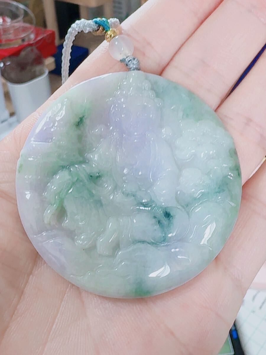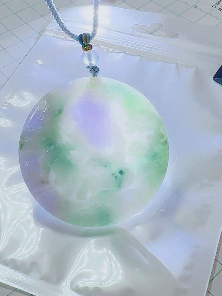 R2-01396天然本翡翠《本物保証》 春彩ひすい 緑 紫 ペンダント 一点物 魔除け 昇進 成功 風水 金運 財運 幸運 幸福 縁起物