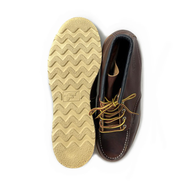 モカシンタイプのつま先(モックトゥ)などが持つ履きやすさ、どのような場所でも歩きやすく長時間履いても疲れにくいトラクショントレッド・ソール。さらに、良質なレザーや堅牢なつくりがもたらす機能性と耐久性でワーカー達に絶大な支持を得て、アメリカを代表するワークブーツとなり、その後約65年経った現在でもレッドウィングを代表するブーツとして愛され続けています。