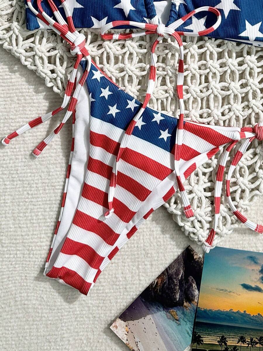 レディース 水着 ビキニセット 夏ビーチ用 レディース アメリカ合衆国旗柄 ホルターネック ブラ&ビキニボトムセット バケーション