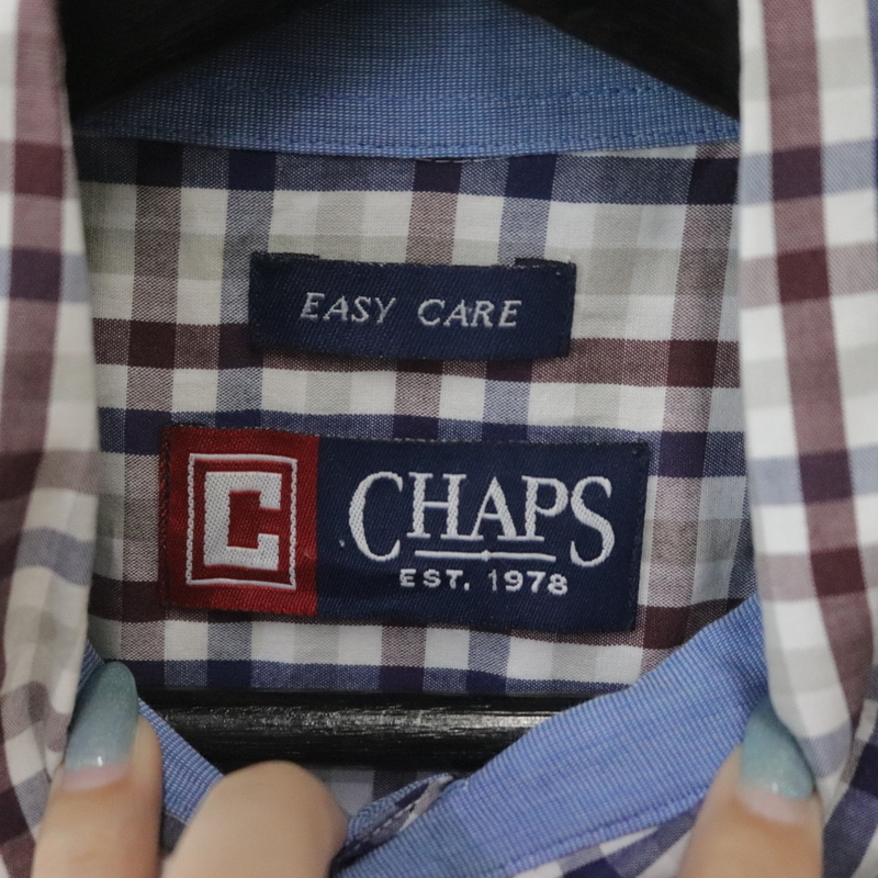 E664 2000年代製 CHAPS チャップス 長袖シャツ■00s 表記Mサイズ ネイビー チェック ボタンダウン アメカジ ストリート 古着 激安 古着卸