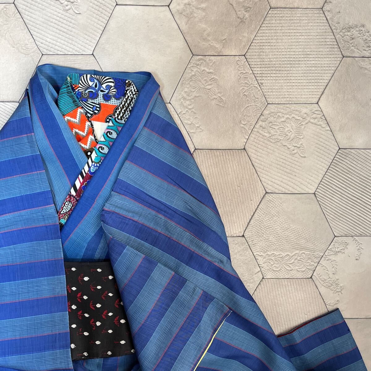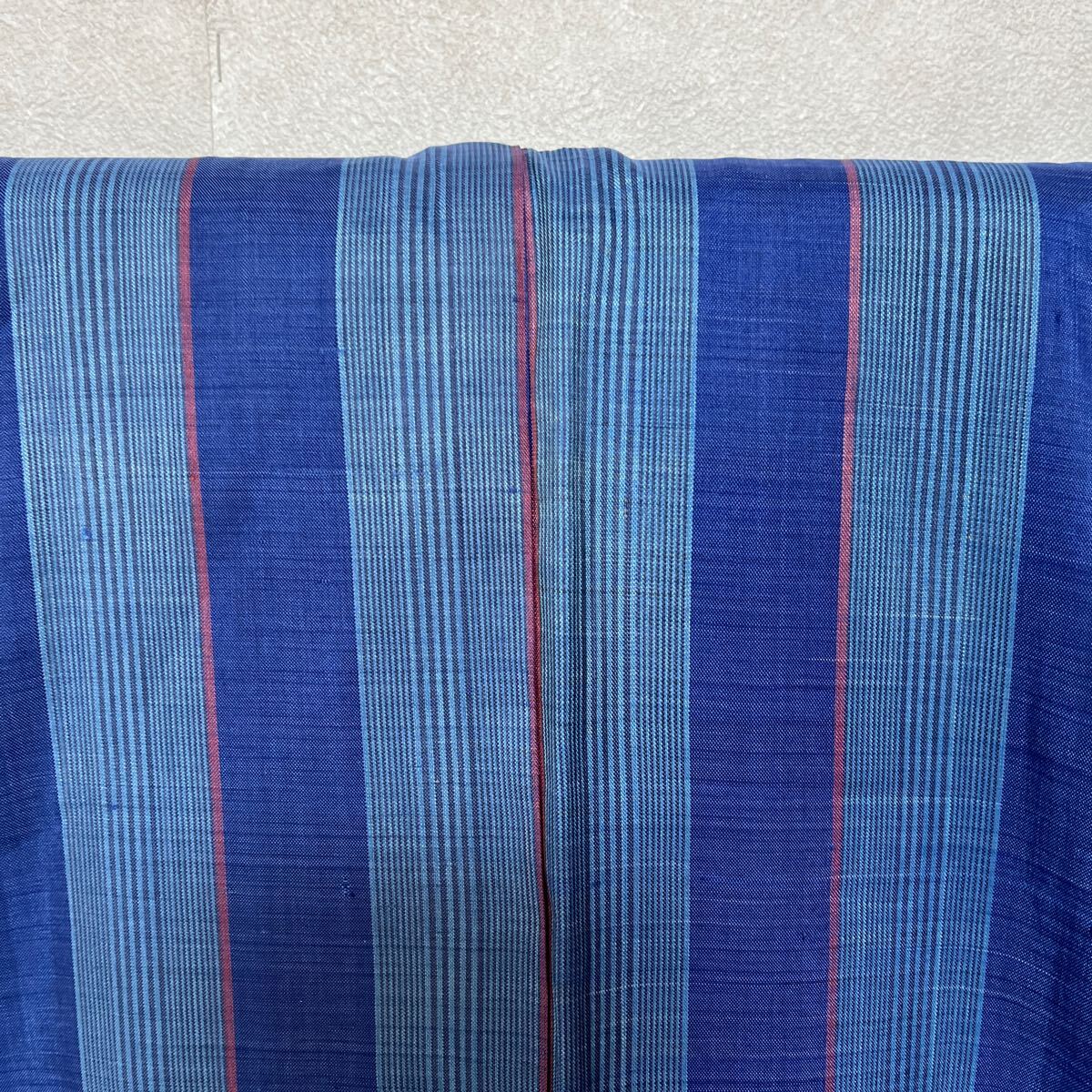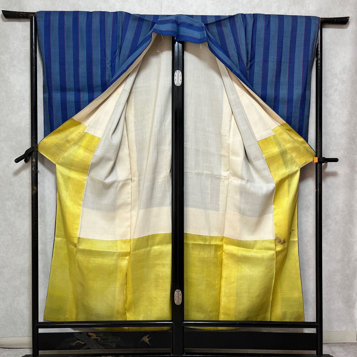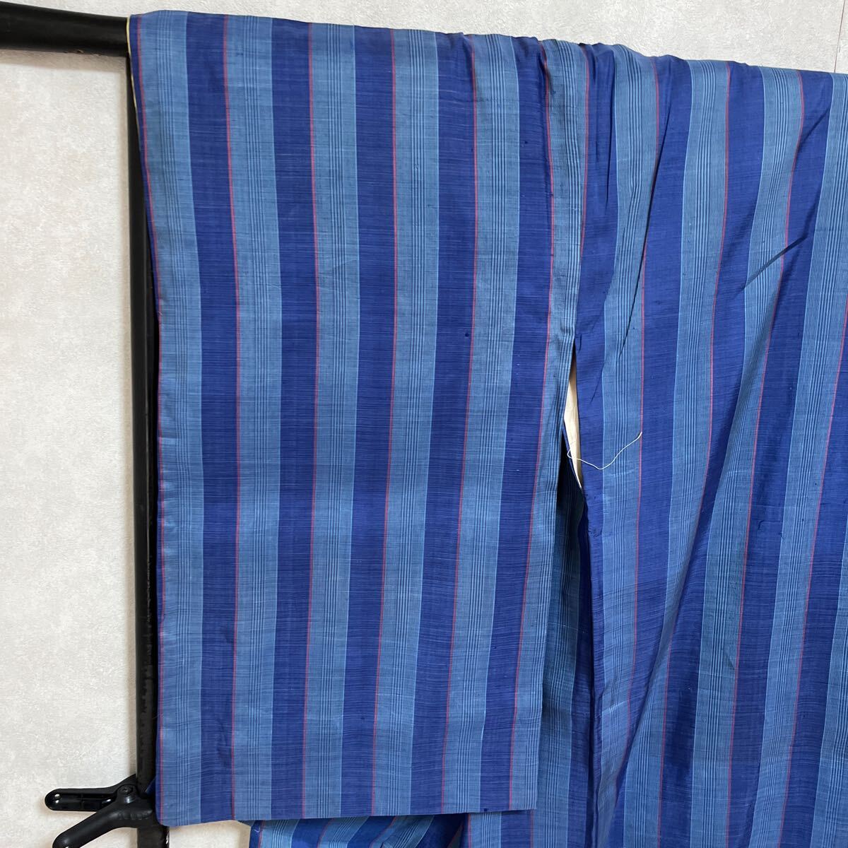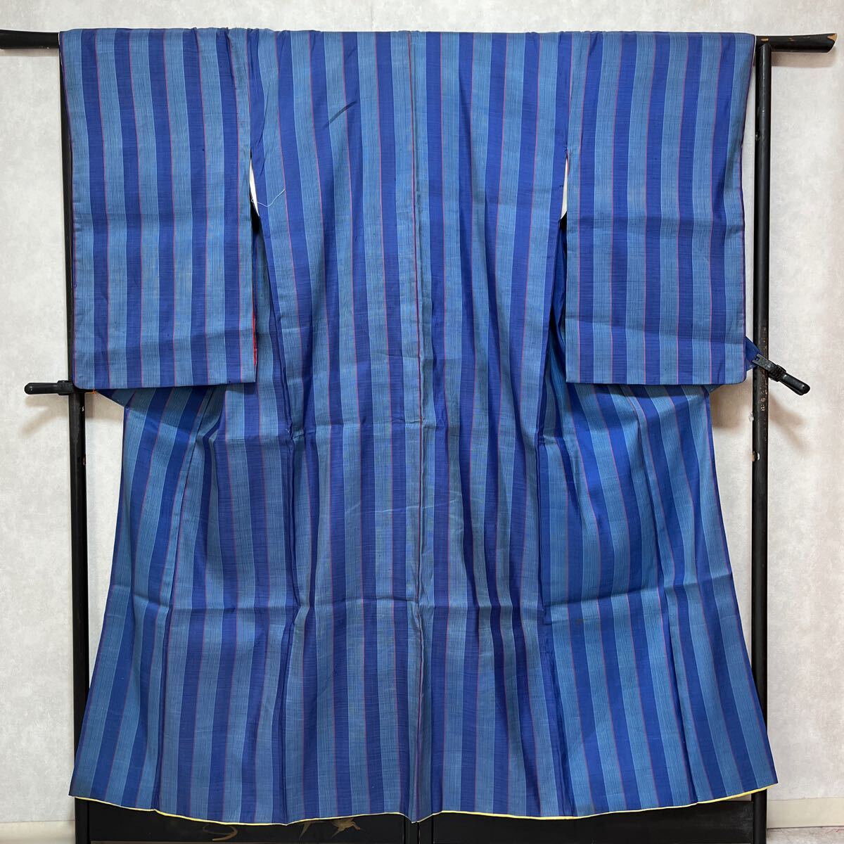 アンティーク 着物 昭和レトロ ブルー 縞模様 ストライプ 大正ロマン モダン リメイク 和洋折衷コーデ 絹 正絹 き09-8k