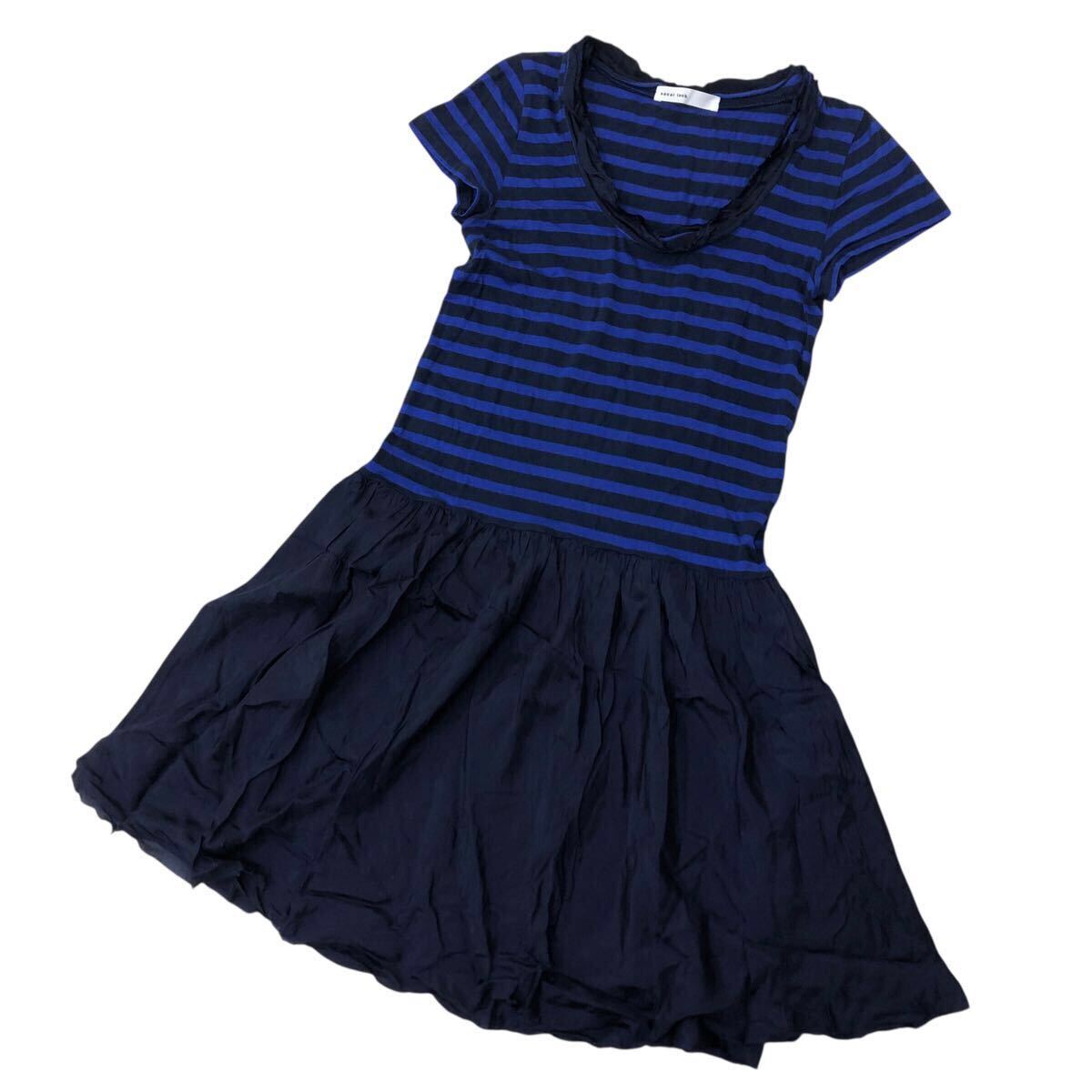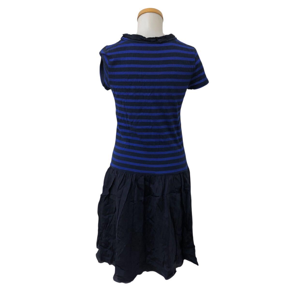 K320-84 sacai luck サカイ ラック 半袖 ワンピース ワンピ フレア ミニ スカート ボーダー 青 黒 レディース 女性用 サイズ 2