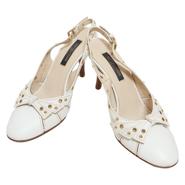 セルジオロッシ sergio rossi サンダル 36 - レザー 白 レディース リボン/スタッズ 靴