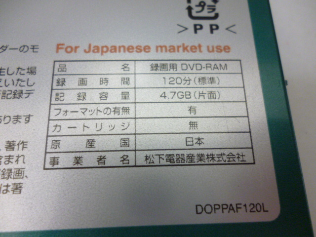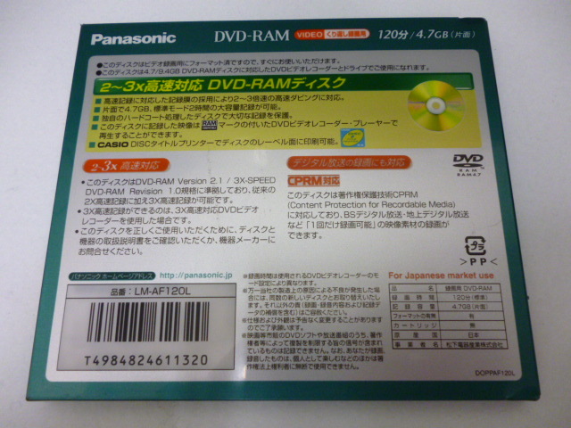★Panasonic パナソニック DVD RAM 120分 4.7GB CPRM対応 2~3x 高速対応 くり返しビデオ録画用 LM-AF120L 未使用未開封