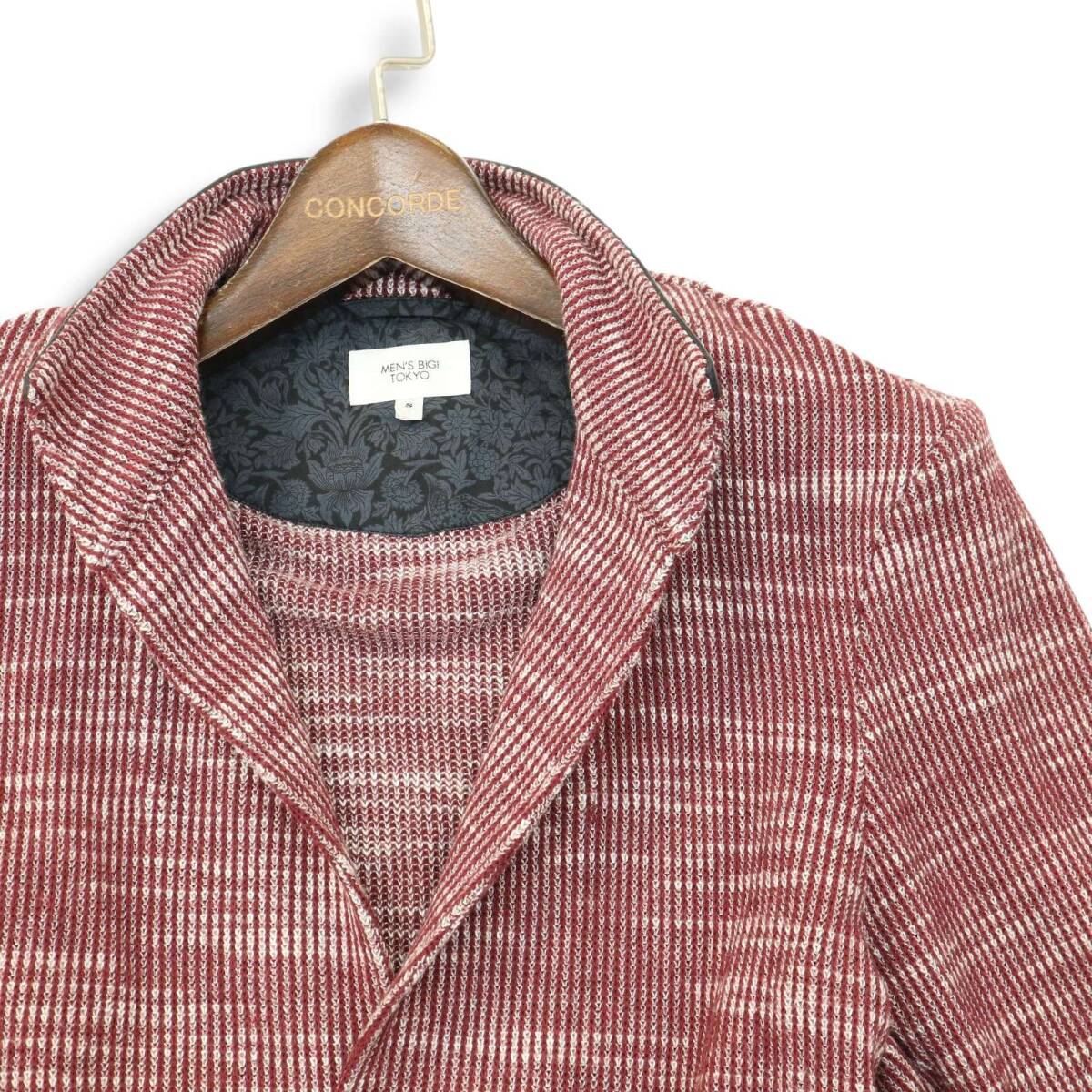 MEN'S BIGI メンズビギ 春夏★ スラブ糸使用 ラッセル ストライプ スタンド スリム ジャケット Sz.S メンズ