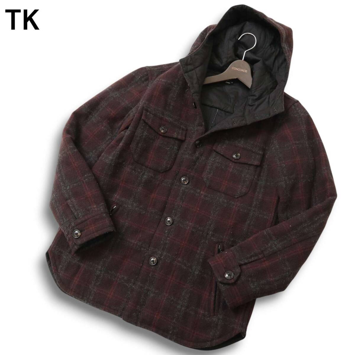 TK タケオキクチ 秋冬 中綿入り★ フーディー チェック ワーク CPO シャツ ジャケット Sz.LL メンズ 大きいサイズ