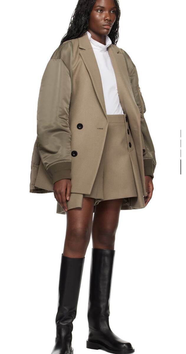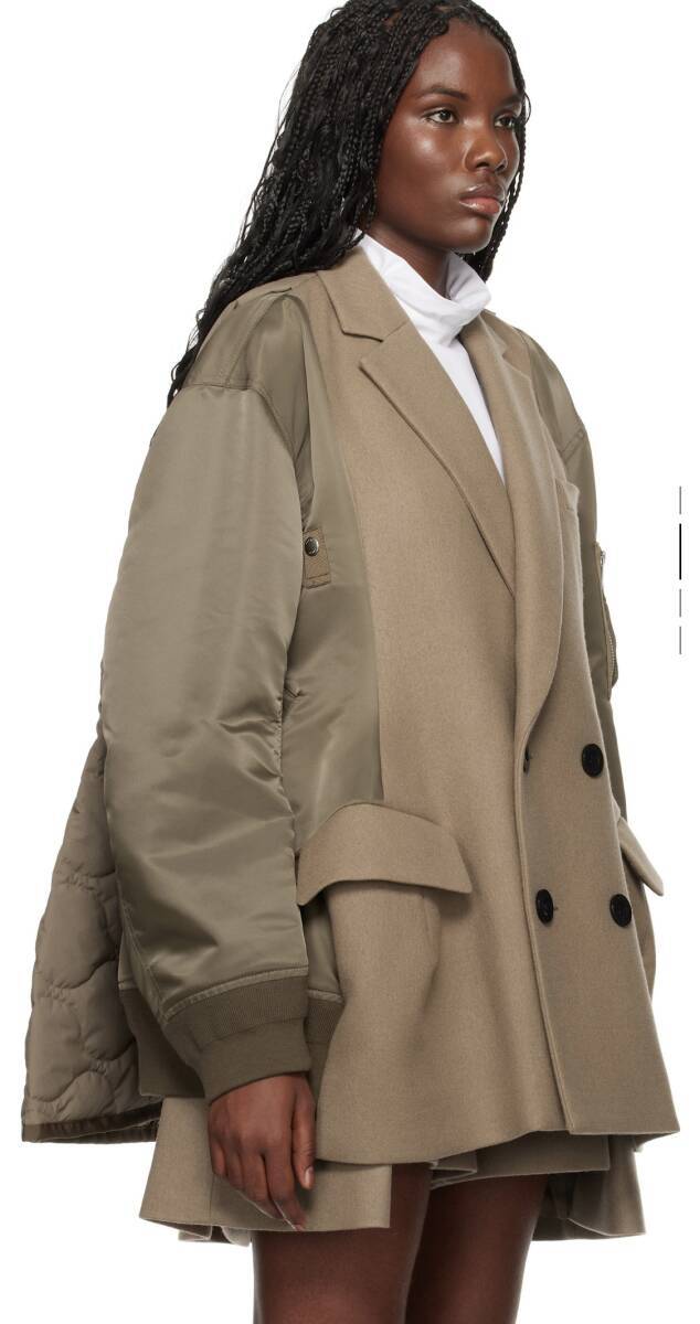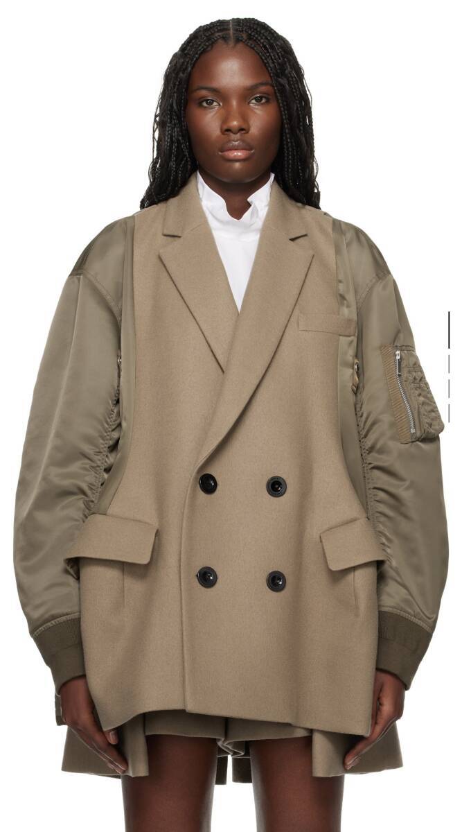 sacai Wool Melton x Nylon Twill Quilted Coat メルトンナイロンツイル コート カーキ系 サイズ1 新品タグ付き
