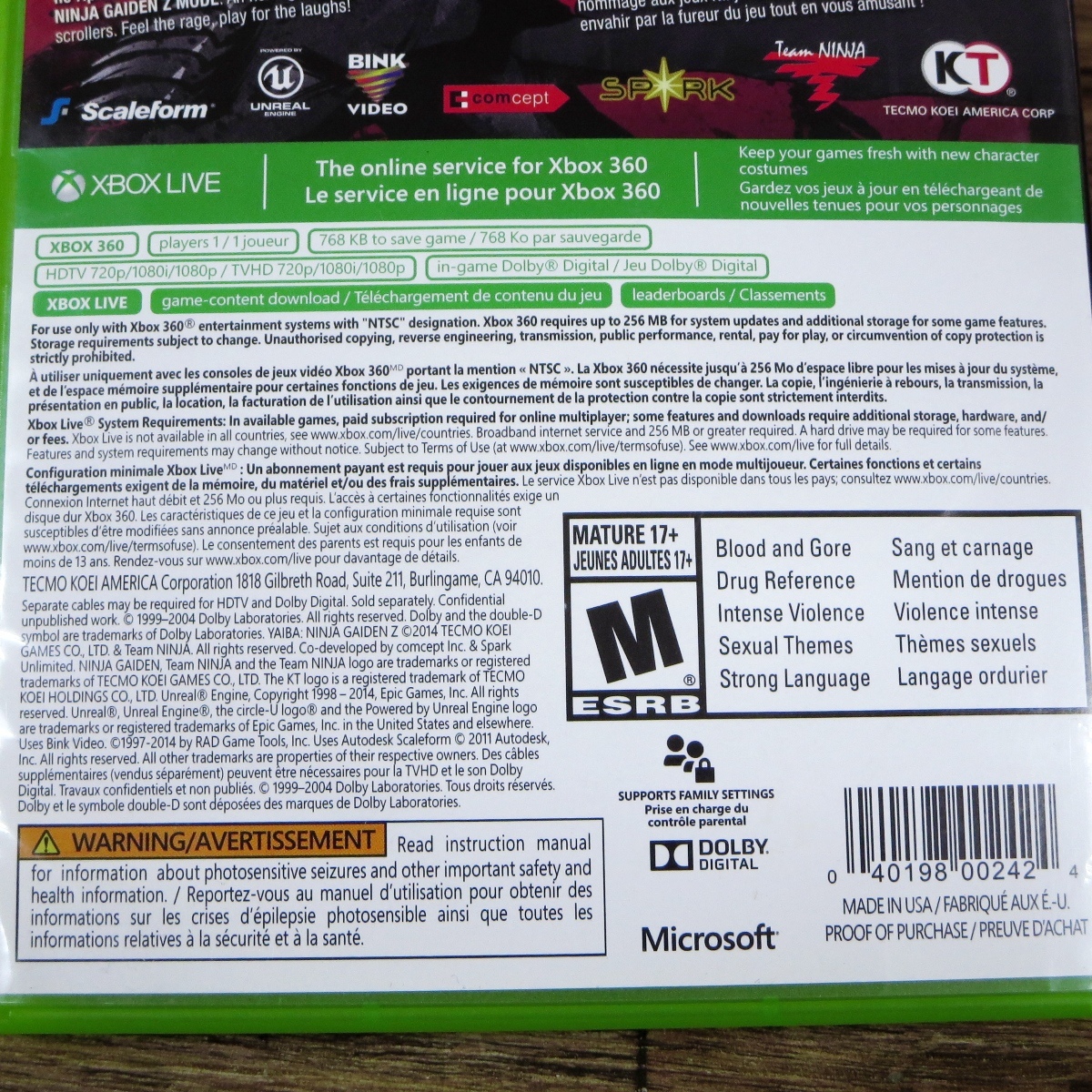 ☆Yaiba Ninja Gaiden Z Xbox360ソフト 北米版 ディスク2枚組