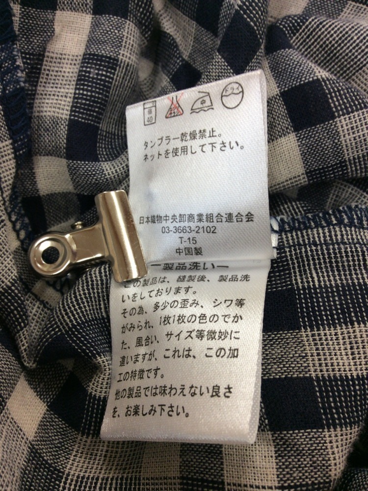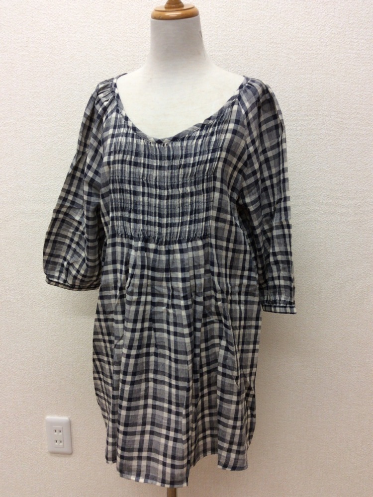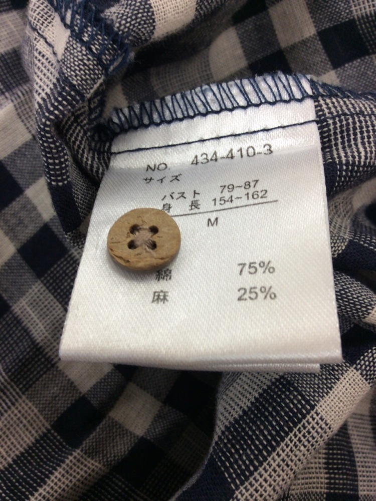 管理番号:99^129903 selectione 紺のギンガムチェックチュニック 紺と生成り 表示サイズ:M 実寸(参考)