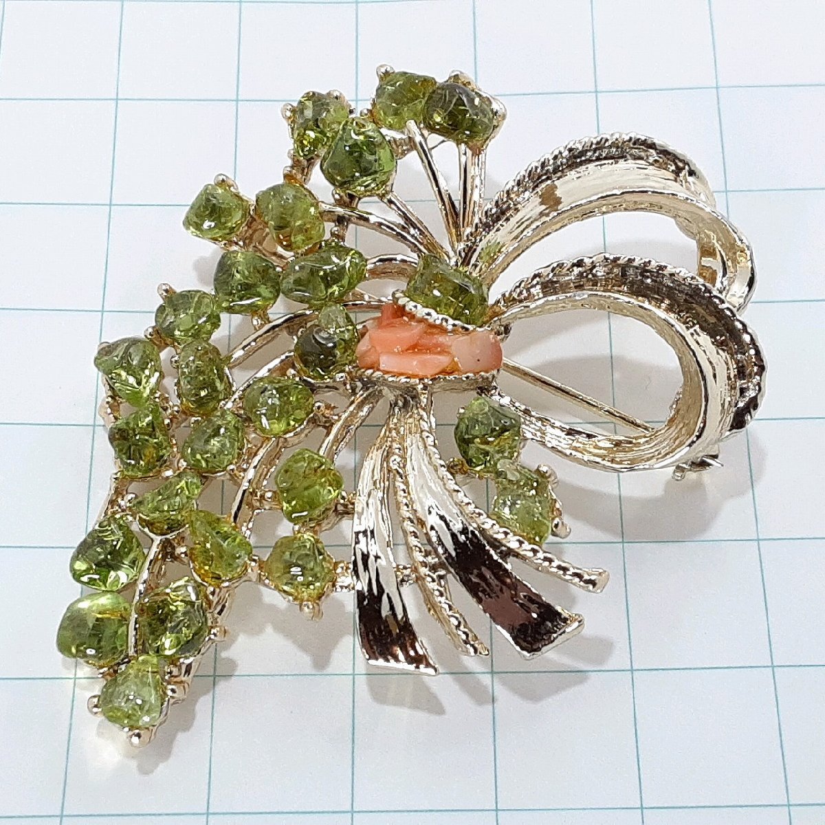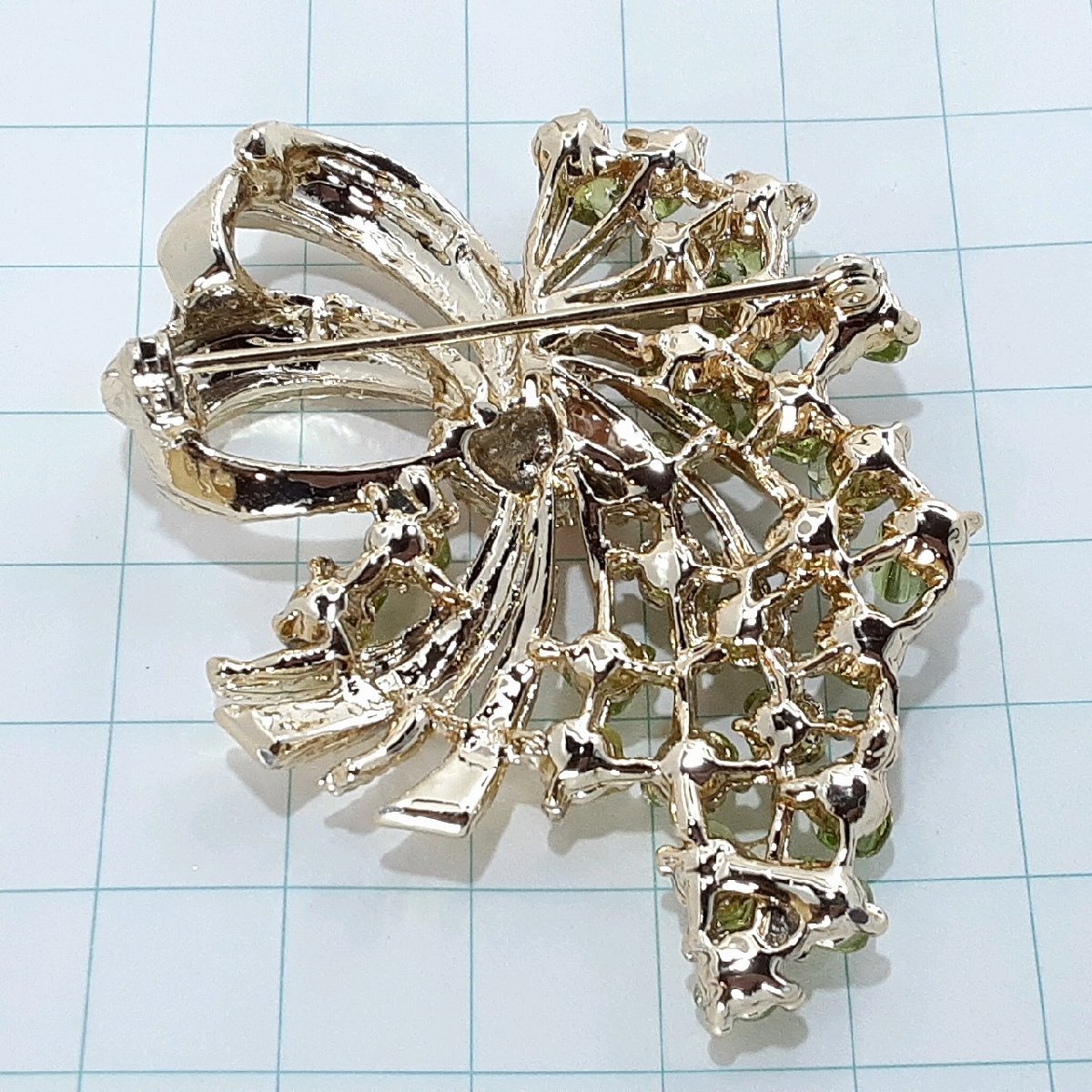 送料無料)ビンテージ☆グリーンラインストーン 天然石☆アンティーク ブローチ A30786