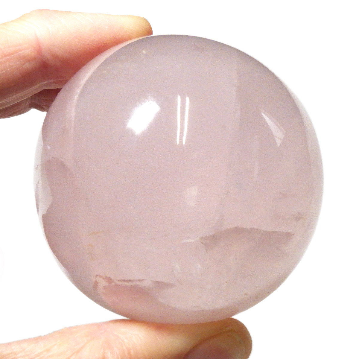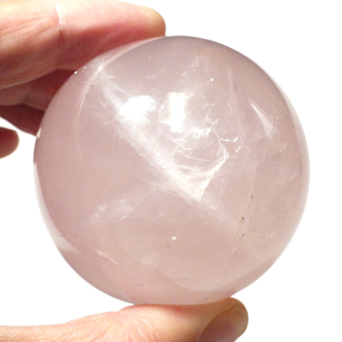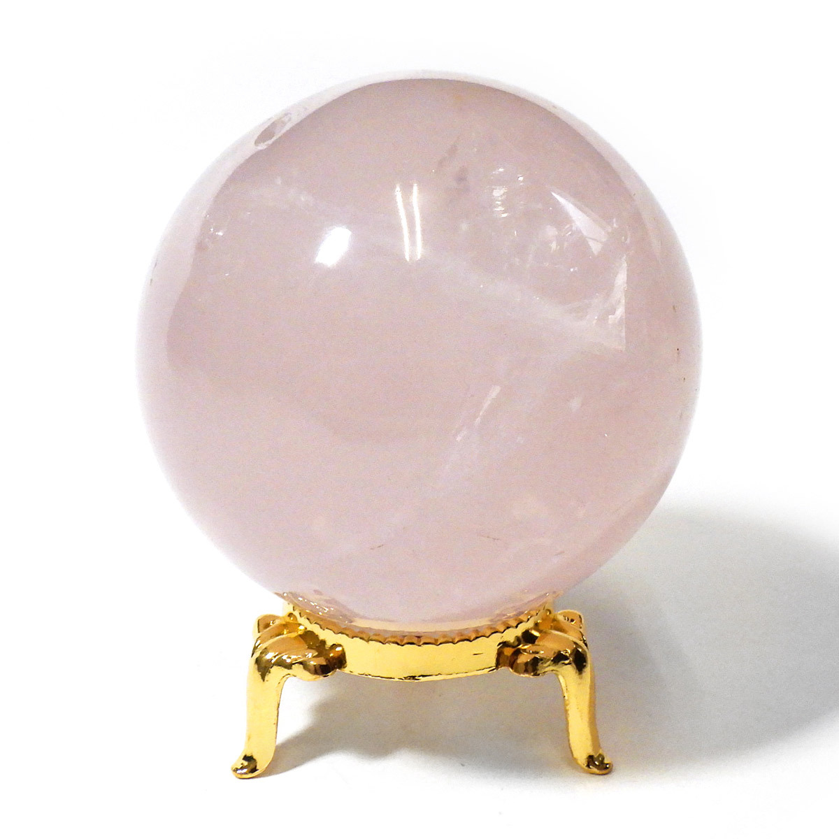 ブラジル産ローズクォーツ球です。手のひらに収まるちょうど良いサイズ感で、デスクやお部屋に置いて癒しのインテリアアイテムとしても人気があります。高品質なブラジル産らしい美しいピンクカラーが魅力で、光にかざすとほんのりとした透明感も楽しめます。特にこのローズクォーツは、内側から発光するようなやさしい色合いが特徴的で、見ているだけで穏やかな気持ちにさせてくれます。また、ライトなどで光を当てると若干ですがスターが見られます。