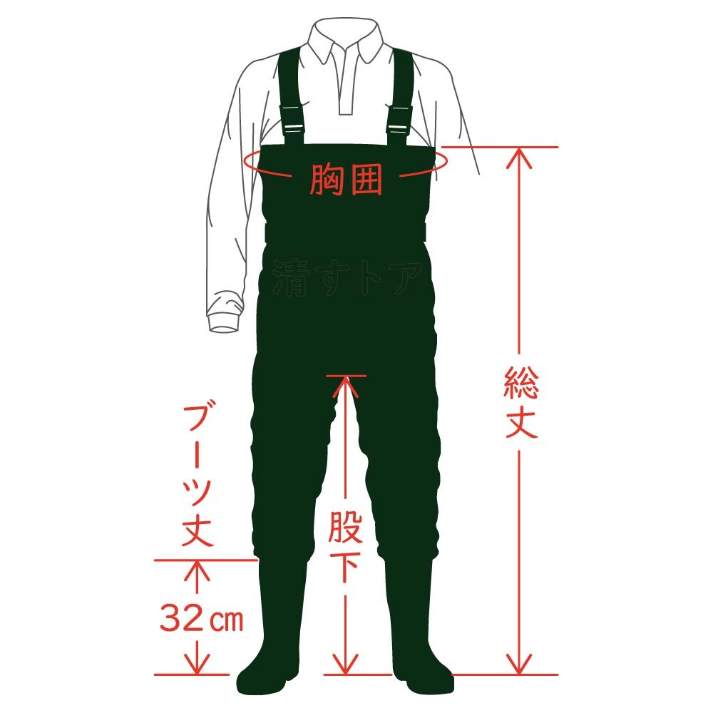 チェストハイウェーダー グリーン LLサイズ(26.5cm~27.0cm) 胴付長靴 荘快堂 V-70