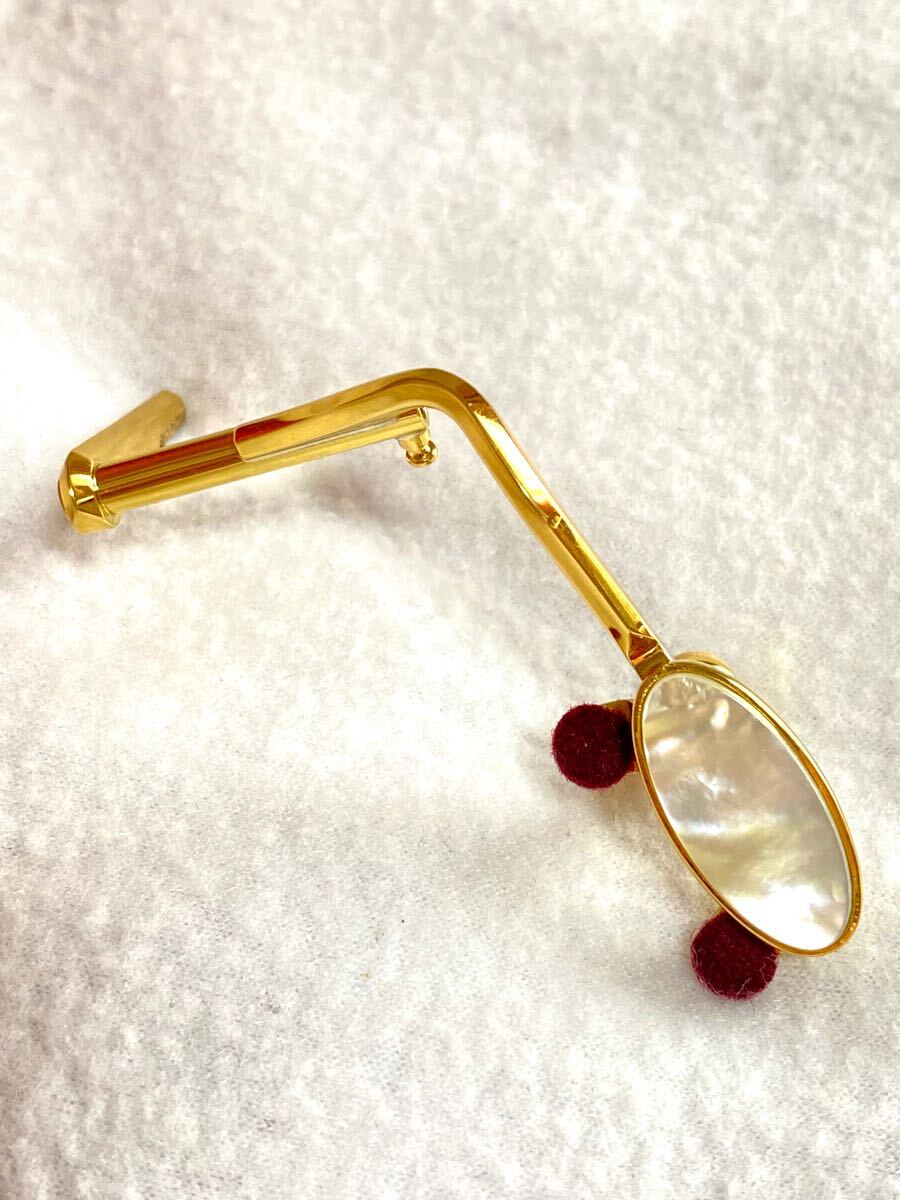 マザーオブパール(白蝶貝)の指貝付きG♯キィは、見た目の高級感もありますが、特に水や汗で濡れた時などに真鍮製のラッカー仕上げよりも滑りにくく、操作感がアップします。