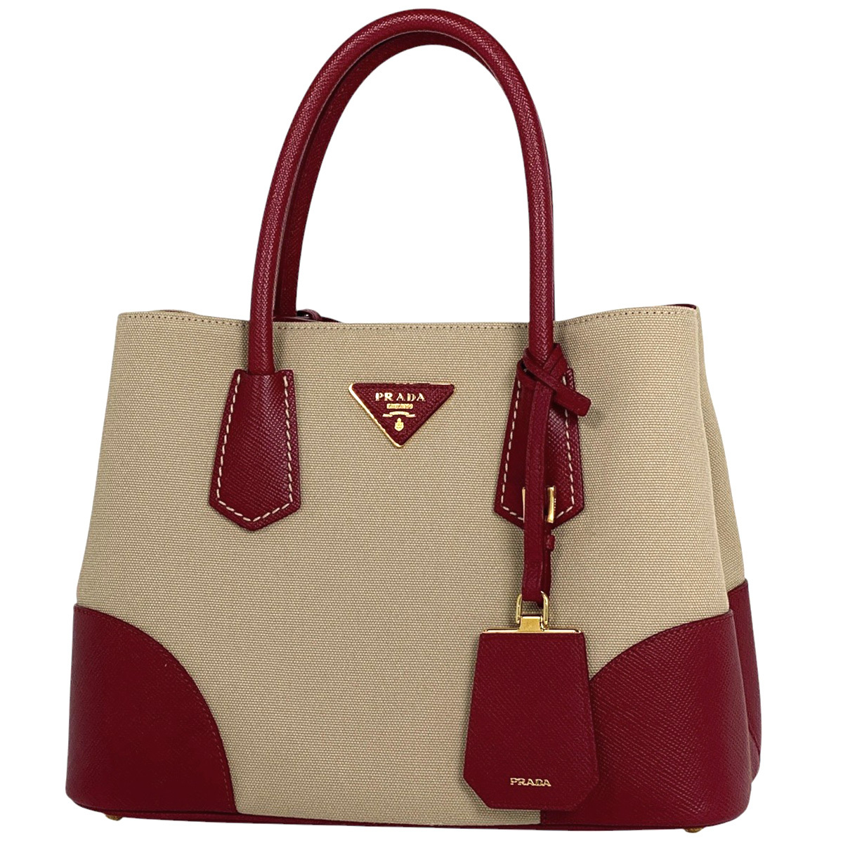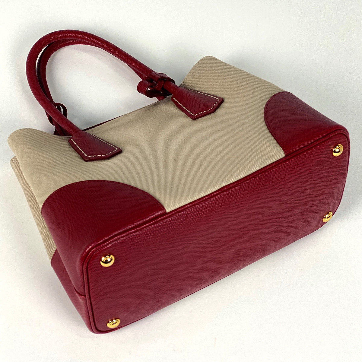 プラダ PRADA ロゴプレート ハンドバッグ 2WAY ショルダーバッグ ハンドバッグ キャンバス ベージュ レッド BN2887 レディース 【中古】 |