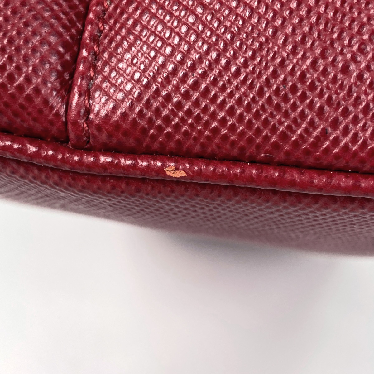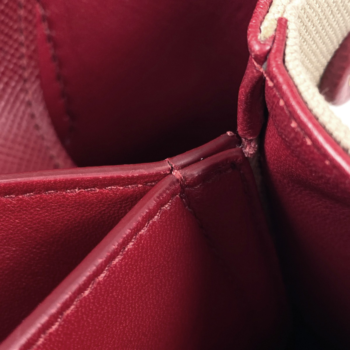《全体》型崩れ、生活臭、シミ、スレ、キズ、シワ、汚れ 《外側》毛羽立ち 《内側》仕切りのフチに亀裂 《内ポケット》フラップにほつれ 《ハンドル》へたれ 《ショルダーストラップ》へたれ、ほつれ 《金具》小キズ |