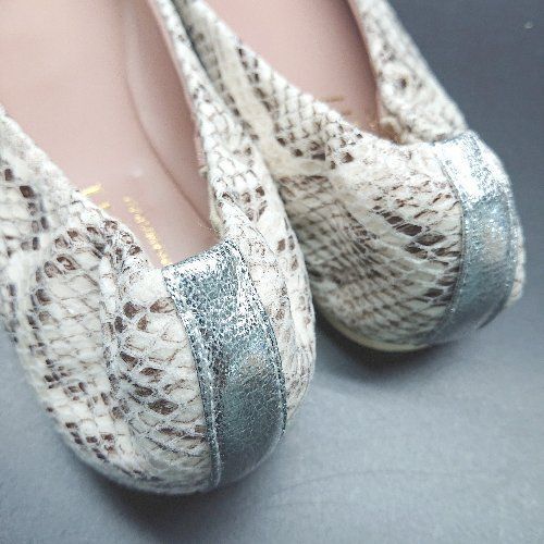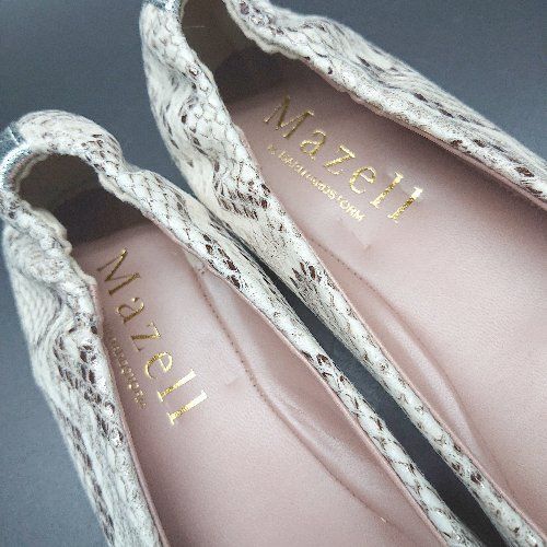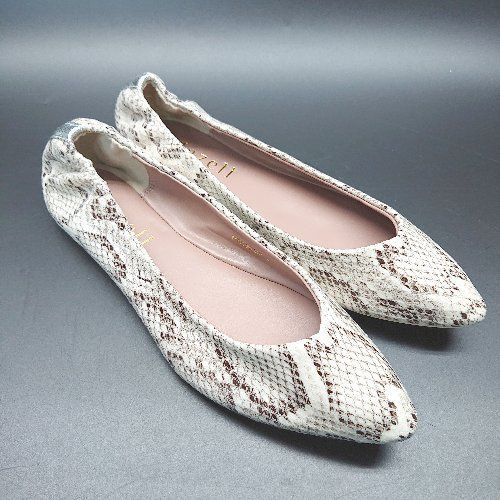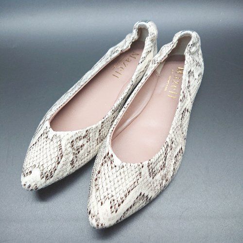 ◇ Mazell マゼル パイソン柄 フラット ポインテッドトゥ パンプス サイズL クリーム/マルチ レディース E