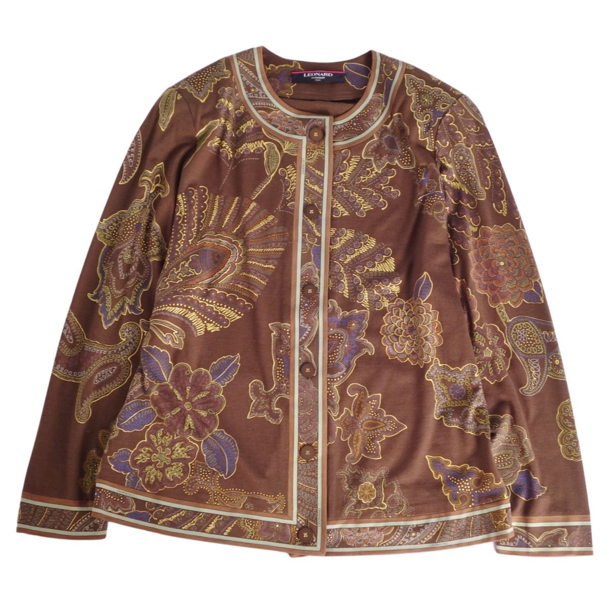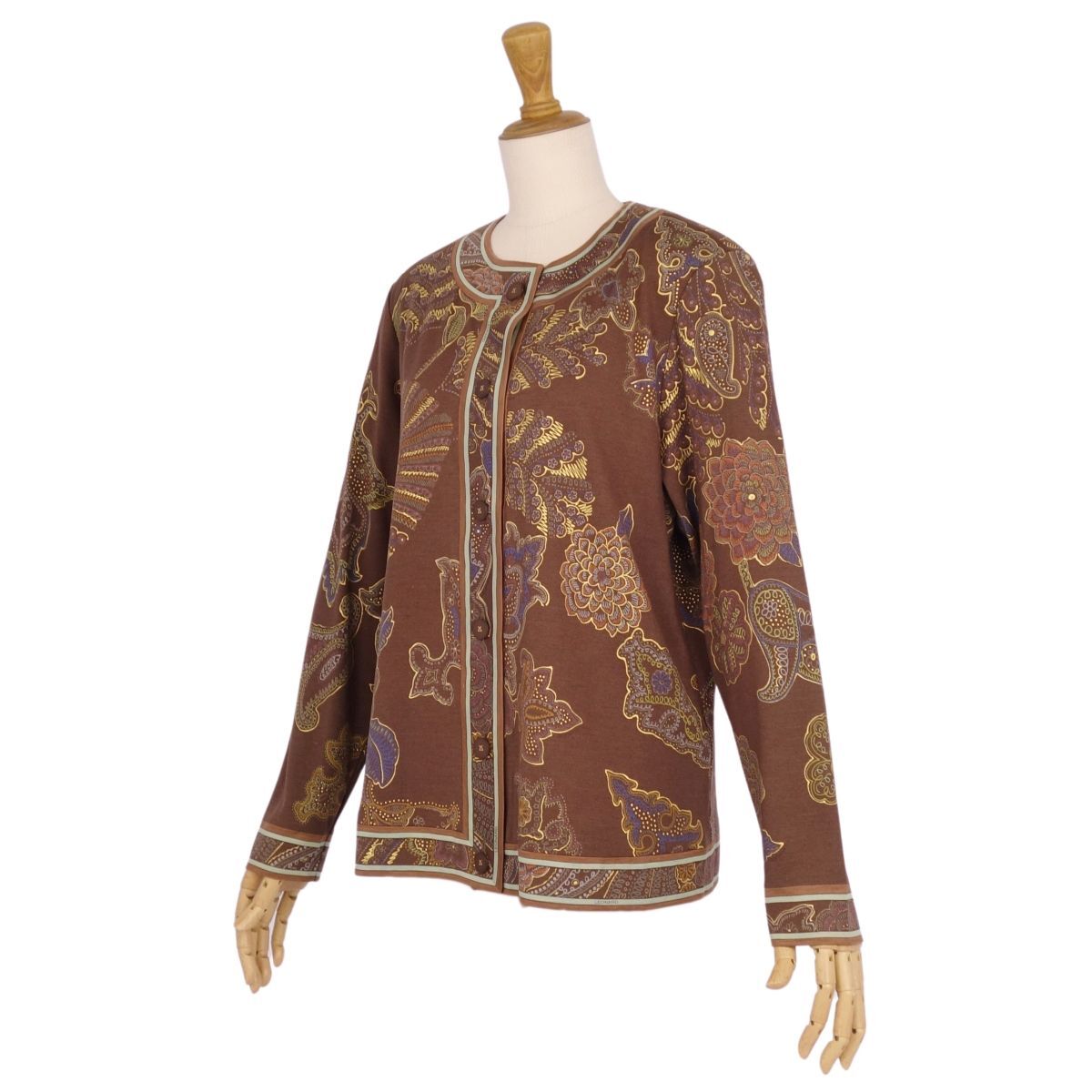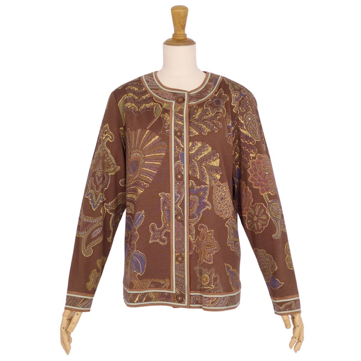 | 極美品 レオナール LEONARD FASHION カーディガン ロングスリーブ 長袖 総柄 ウール シルク トップス M ブラウン |