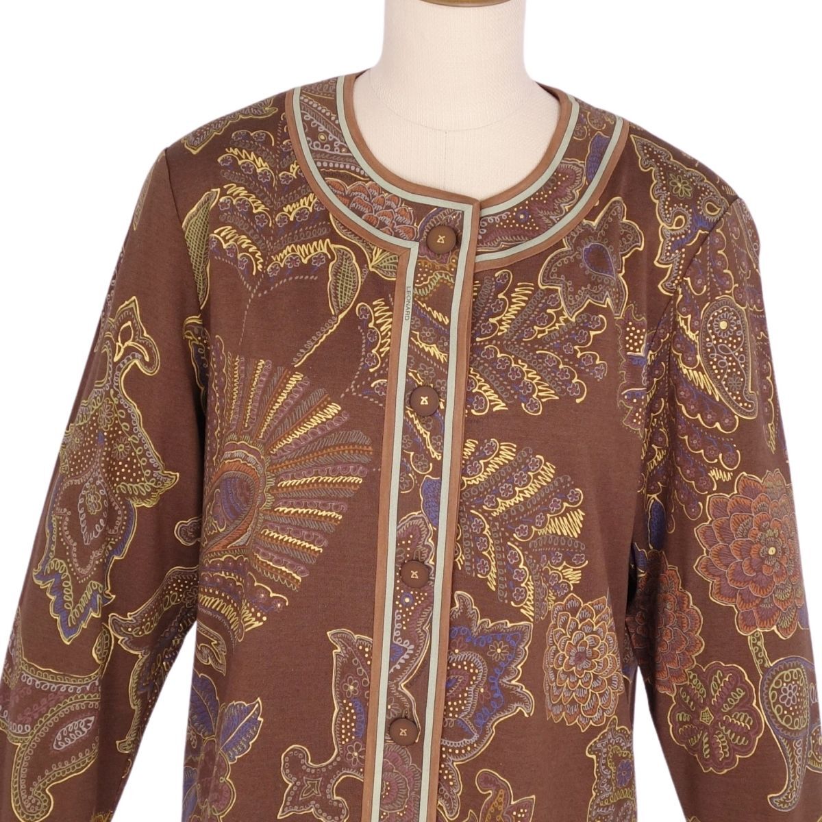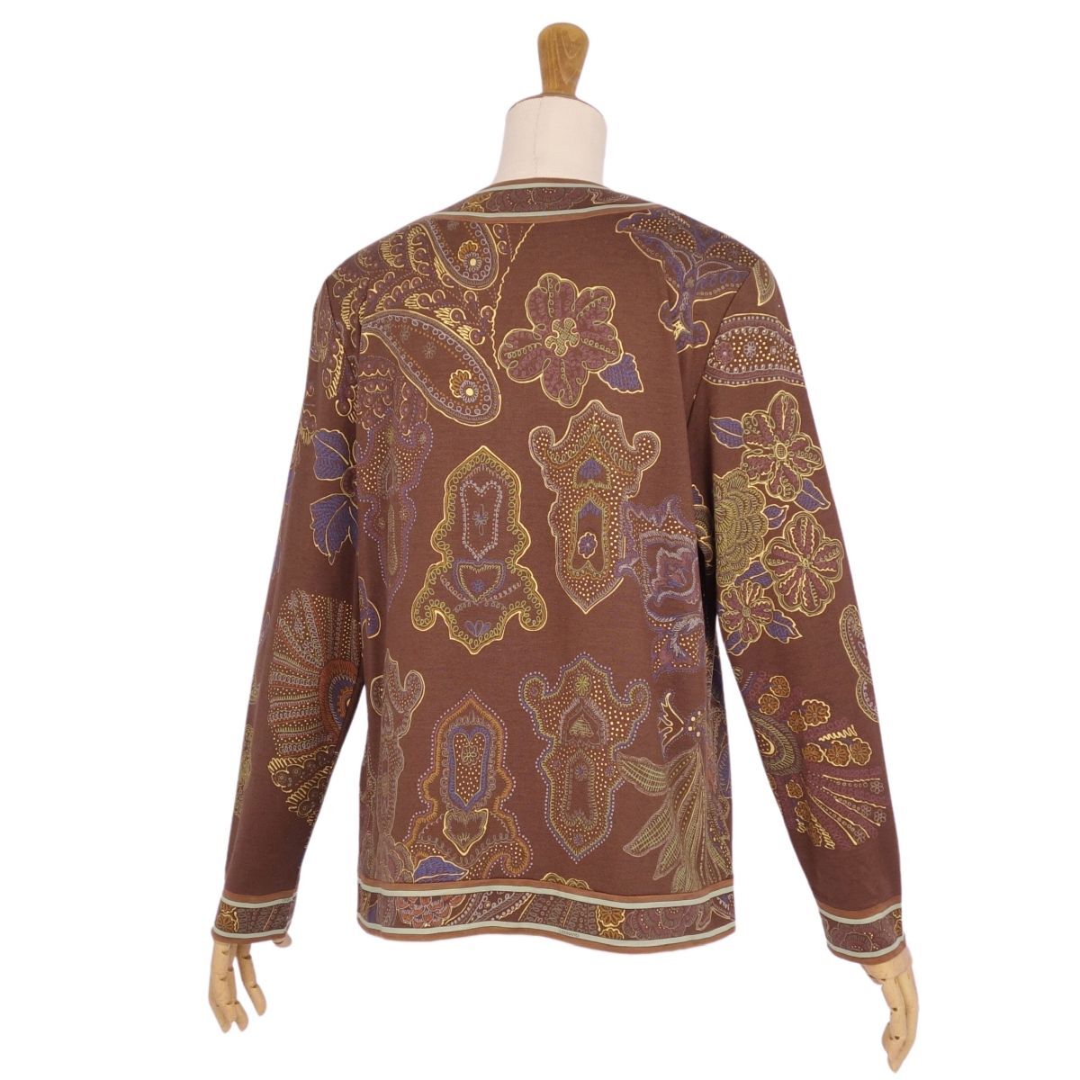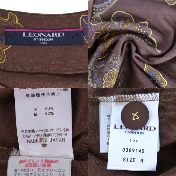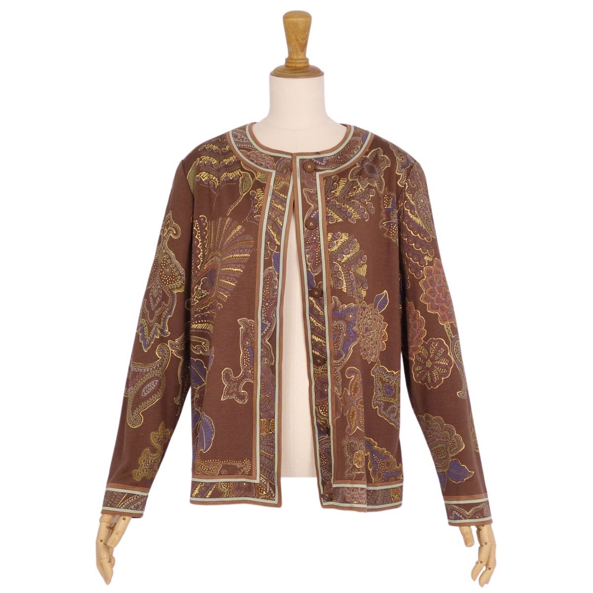 | 極美品 レオナール LEONARD FASHION カーディガン ロングスリーブ 長袖 総柄 ウール シルク トップス M ブラウン |