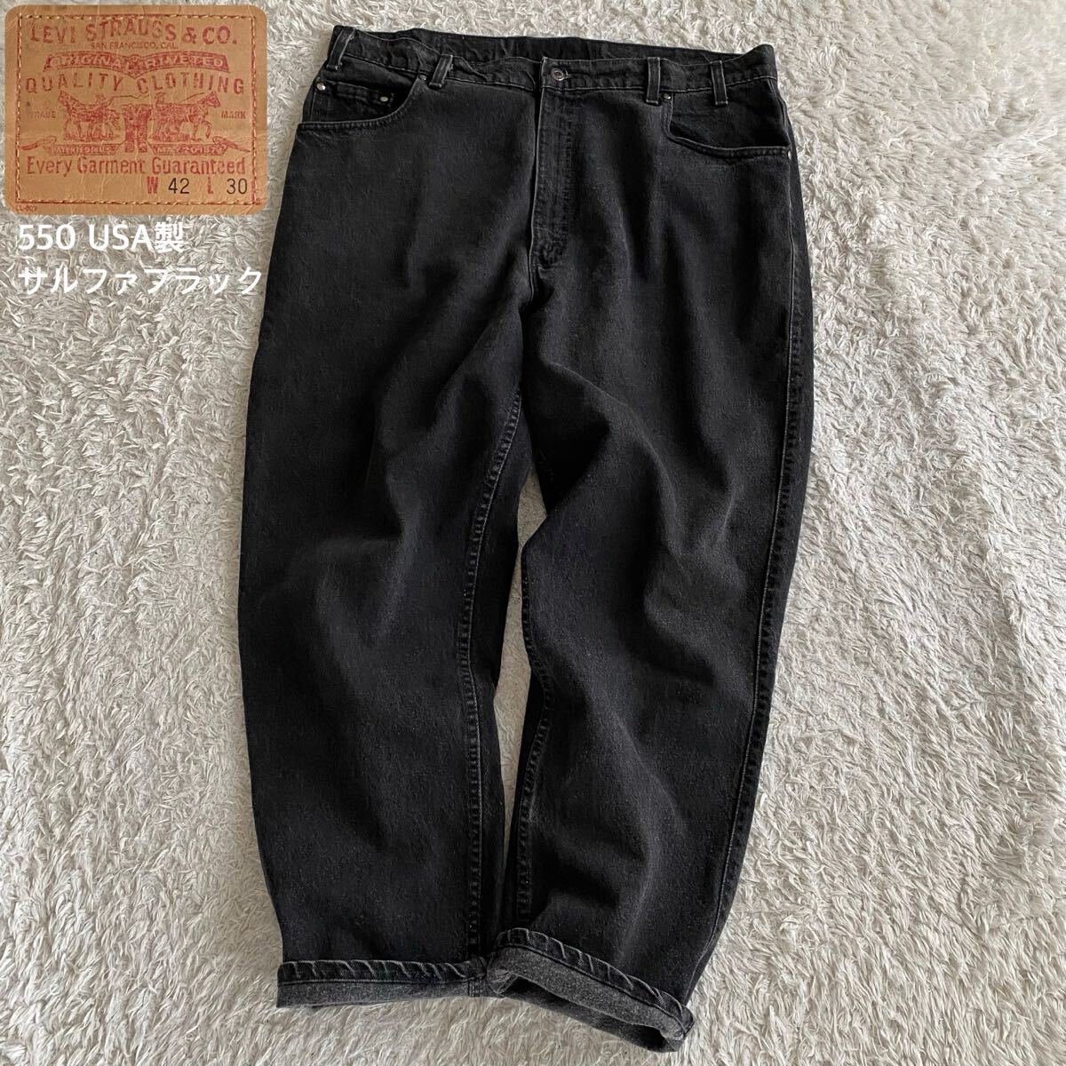 90s 550 ブラックデニム サルファブラック 後染め サルファダイ 硫化染め テーパード デニム ジーパン Gパン ジーンズ パンツ ボトムス ヴィンテージ ビンテージ Y2K アメカジ