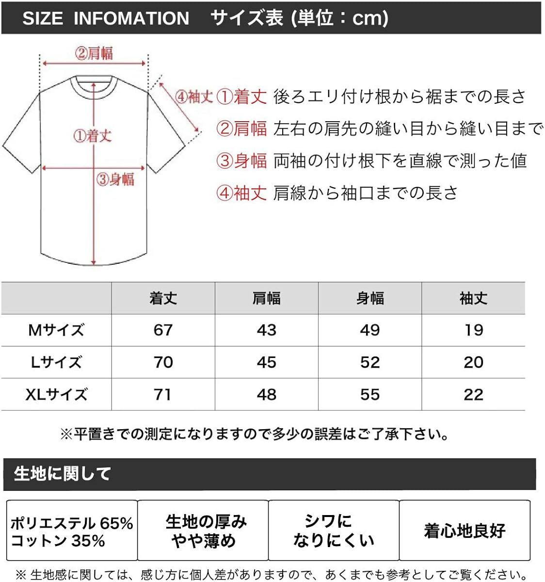| 商品説明 | サイズ:XL 状態:新品 XLサイズ 着丈: 71cm 肩幅: 48cm 身幅: 55cm 袖丈: 22cm ※平置きでの測定になりますので多少の誤差はご了承下さい。 ◎サイズ感として◎ 当店スタッフ(男性 身長170cm 体重65kg 少しがっちり体型) が着用してみると Mサイズ 着ることはできますが、少し小さめ。ピチピチでは無いので小さめに着たいならOK Lサイズ 少しゆとりがある感じで、ちょうどいいサイズ XLサイズ 少し大きめですが、大きめに着たいなら着れなくは無い感じです。 普段日本製品だとLサイズを着用。 素材はポリエステルとコットンがミックスされたシワになりにくい生地です。 |