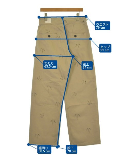 | ウエスト:79cm,裾周り:50.5cm,ヒップ:91cm,わたり:65.5cm,股上:34cm,股下:78cm |