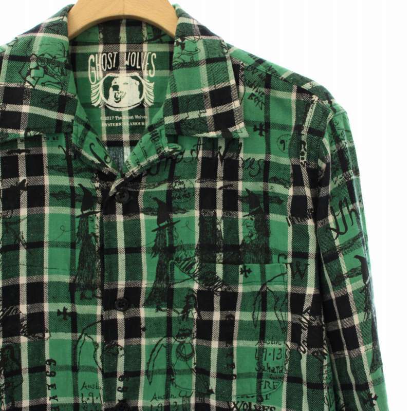 ヒステリックグラマー HYSTERIC GLAMOUR 17AW シャツ チェック プリント 総柄 長袖 S 緑 02173AH01 /TK メンズ