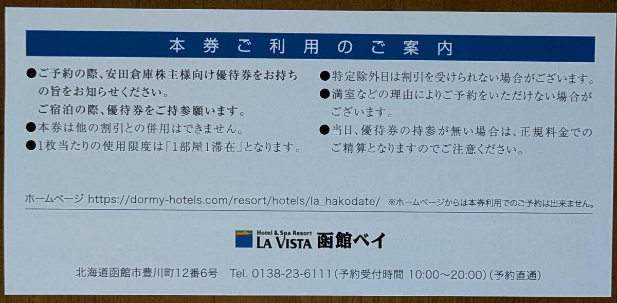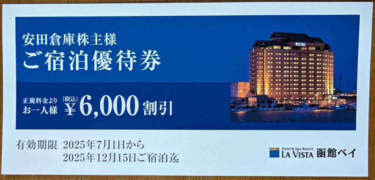 株主優待 安田倉庫 ラビスタ函館ベイ ご宿泊優待券 6000円割引です。