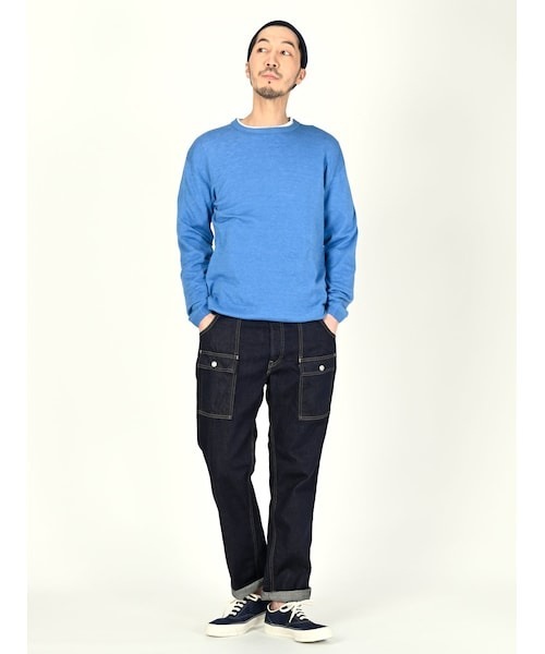 厳しい環境で働く猟師たちの身を守るブッシュパンツ。足さばきのよい細身のシルエットと藪や、茂みから大切な道具を守るフラップポケットを備えた山のパンツです。ライ麦パンのようなベージュの糸とインディゴ糸で織り上げたライ麦デニムはやわらかく、ふっくら。深い色合いの見た目よりもずっと軽く、ヘルシーに仕上がりました。