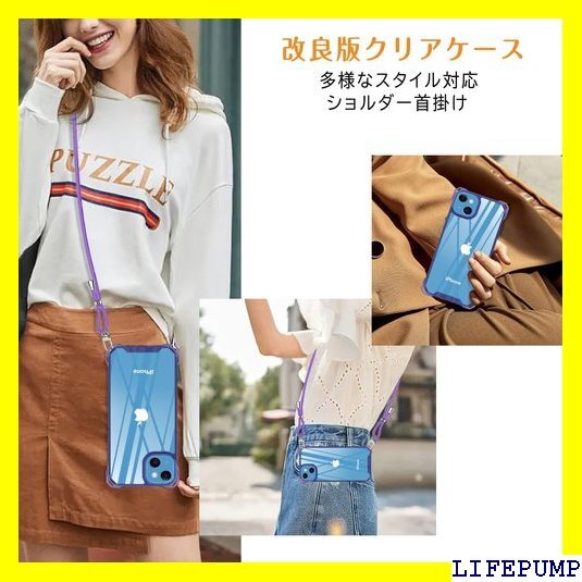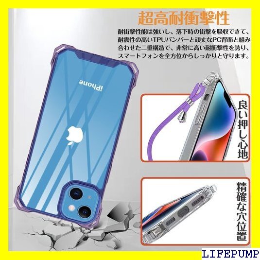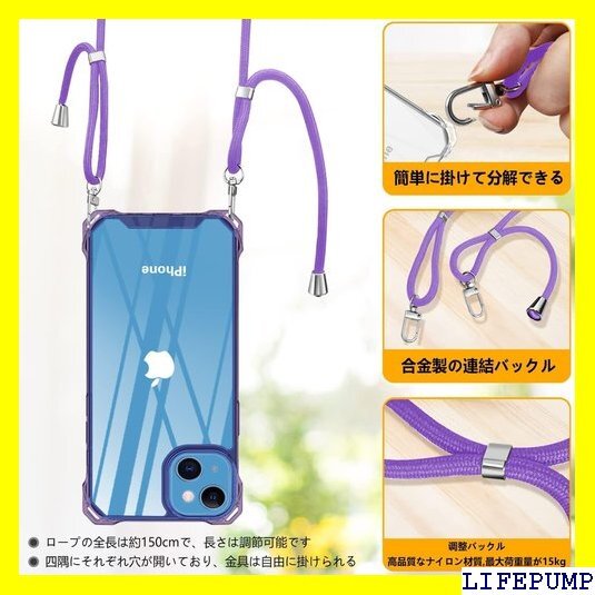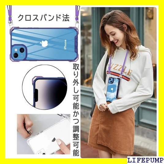 iPhone 13 ケース クリア PC iPhone 14 ケース ショルダー 軽量 耐衝撃 カバー アイフォン14 ケース アイフォン13 ケース 透明 薄型 軽量 PC背面 + TPUバンパー 二層構造 携帯ケース 首掛け 肩掛け 斜めかけ 縄掛けケース ストラップ付き 1.5M 取り外し可能 縦/横 2WAY 調節可能な 全面保護 落下防止 衝撃吸収 ワイヤレス充電対応 パープル 699