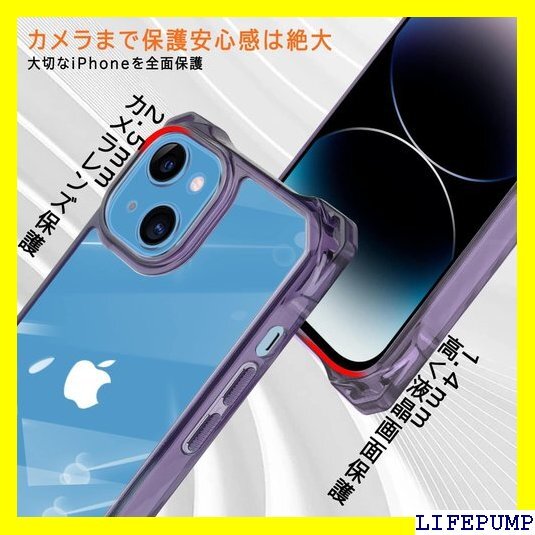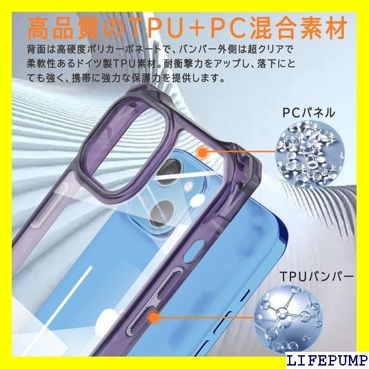 iPhone 13 ケース クリア PC iPhone 面保護 落下防止 衝撃吸収 ワイヤレス充電対応 パープル 699