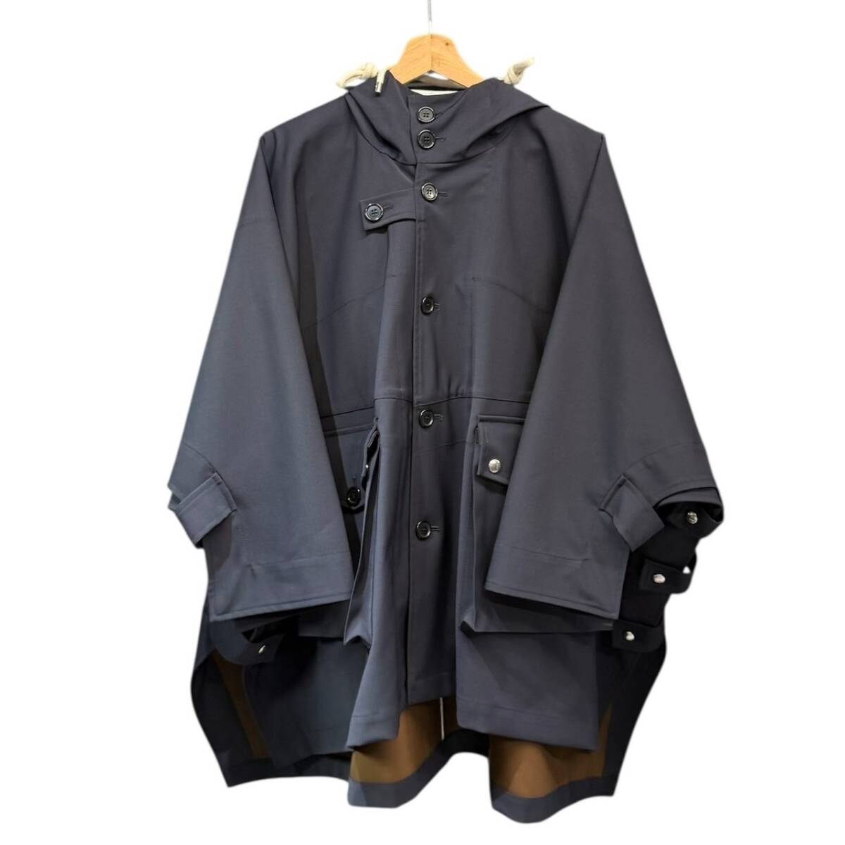 | 備考 | 22年秋冬のルック4で着用されていたポンチョ。両サイドボタンになっていたりポケットにはアイコンのロゴがあるなどプランシーらしい遊び心ある一着です。※目立った汚れはございませんが完璧を求めるかたや古着にご理解ないかたはご購入をお控えくださいませ。 |